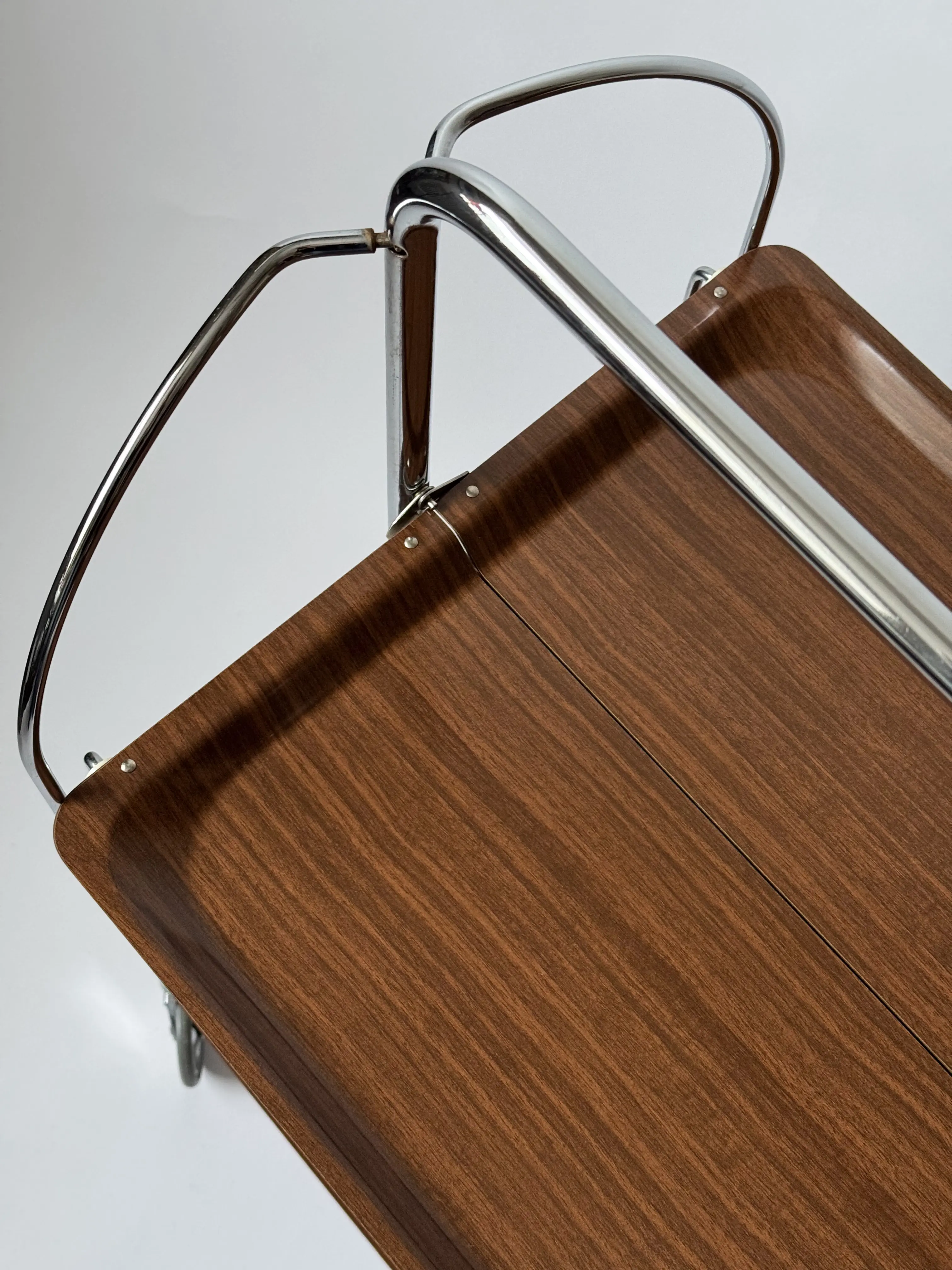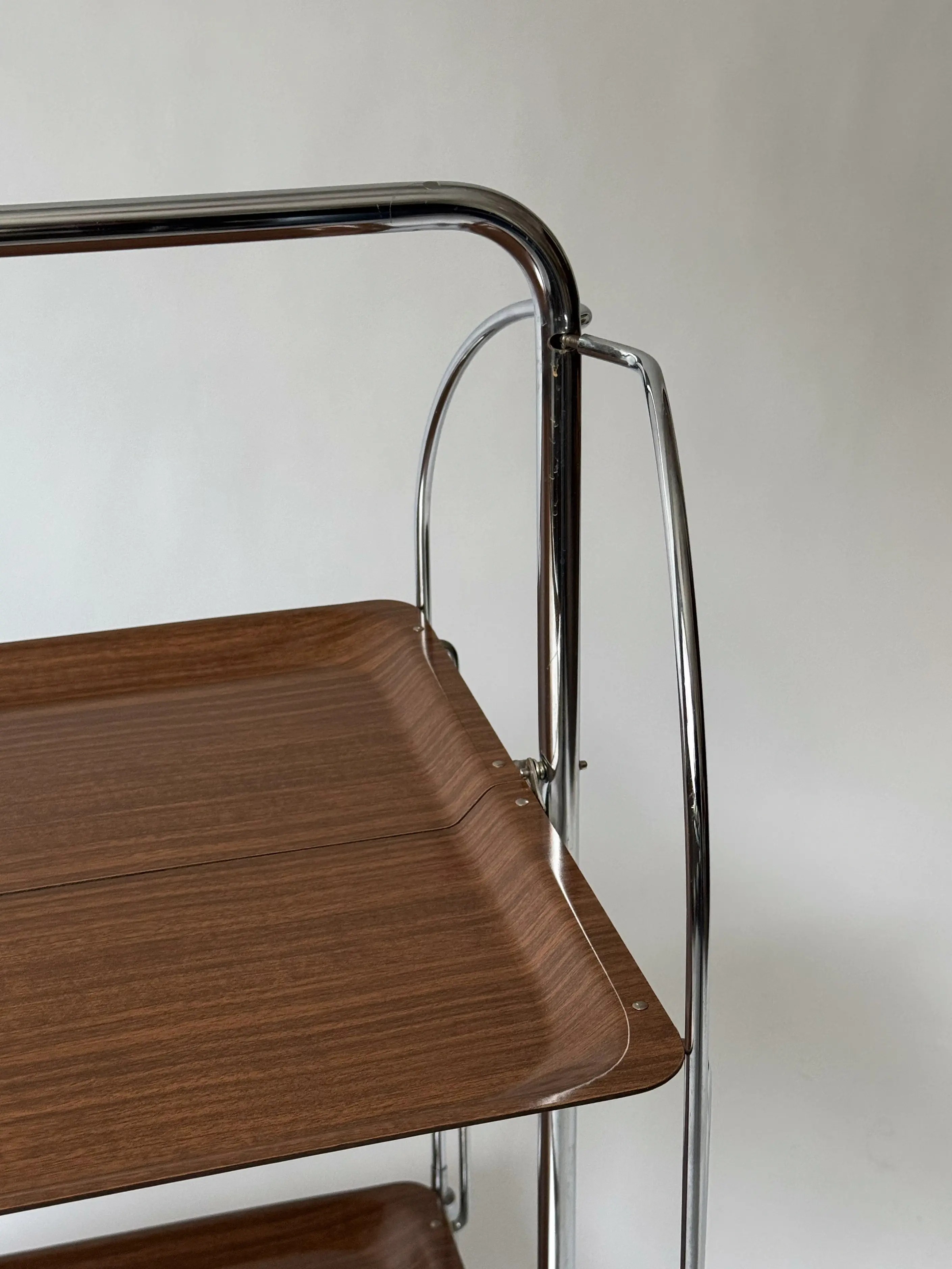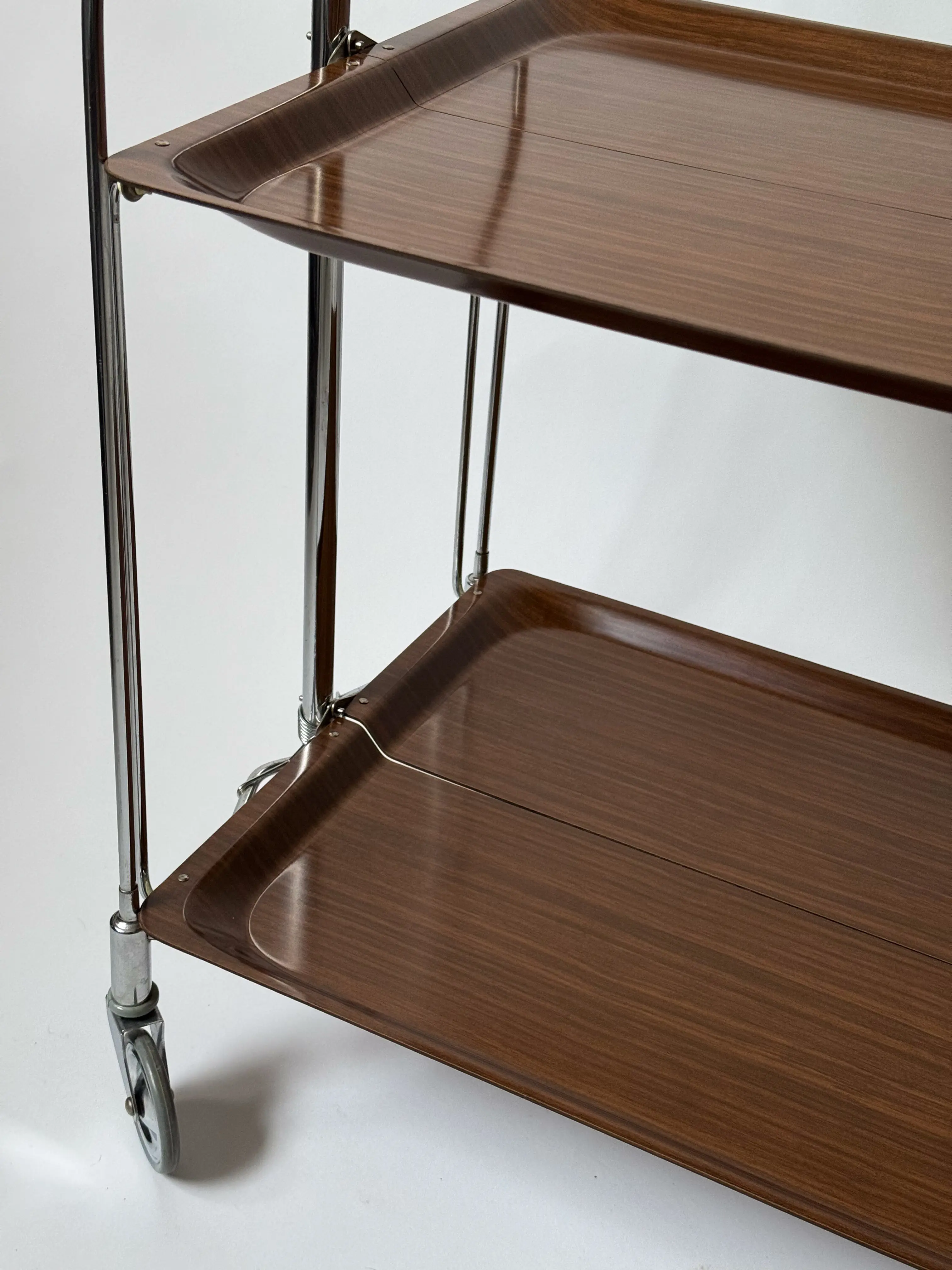 Bremshey folding trolley dating back to the 60's/70's with a shiny chrome frame and wheels. Made in Germany. Trolley folds both half-way and fully, making it super easy to store. In great condition. Has been cleaned and inspected by Mendera.
