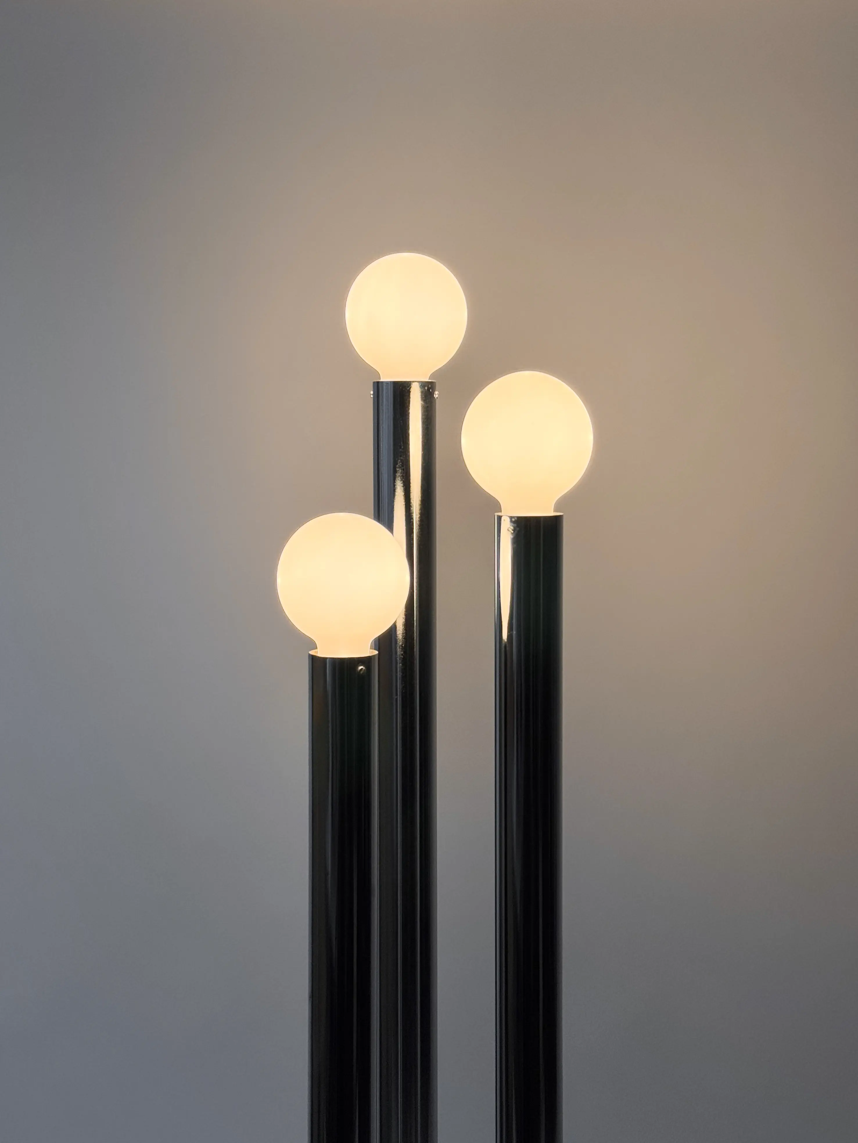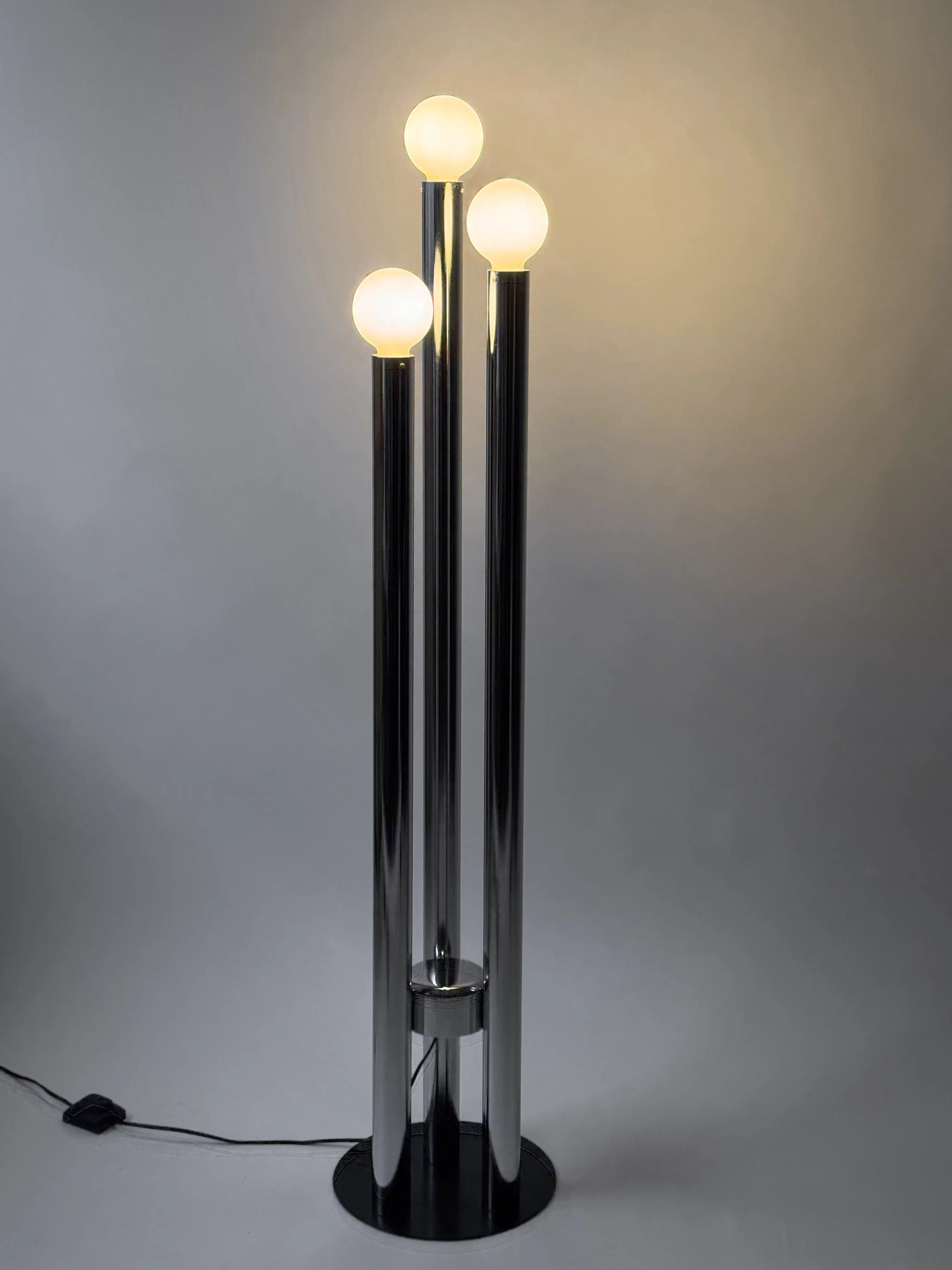 Vintage floor lamp from the 1970's by Habico. Chrome frame and glass lightbulbs. Floor switch. In great vintage condition. Has been cleaned, inspected and tested by Mendera. New lightbulbs installed.