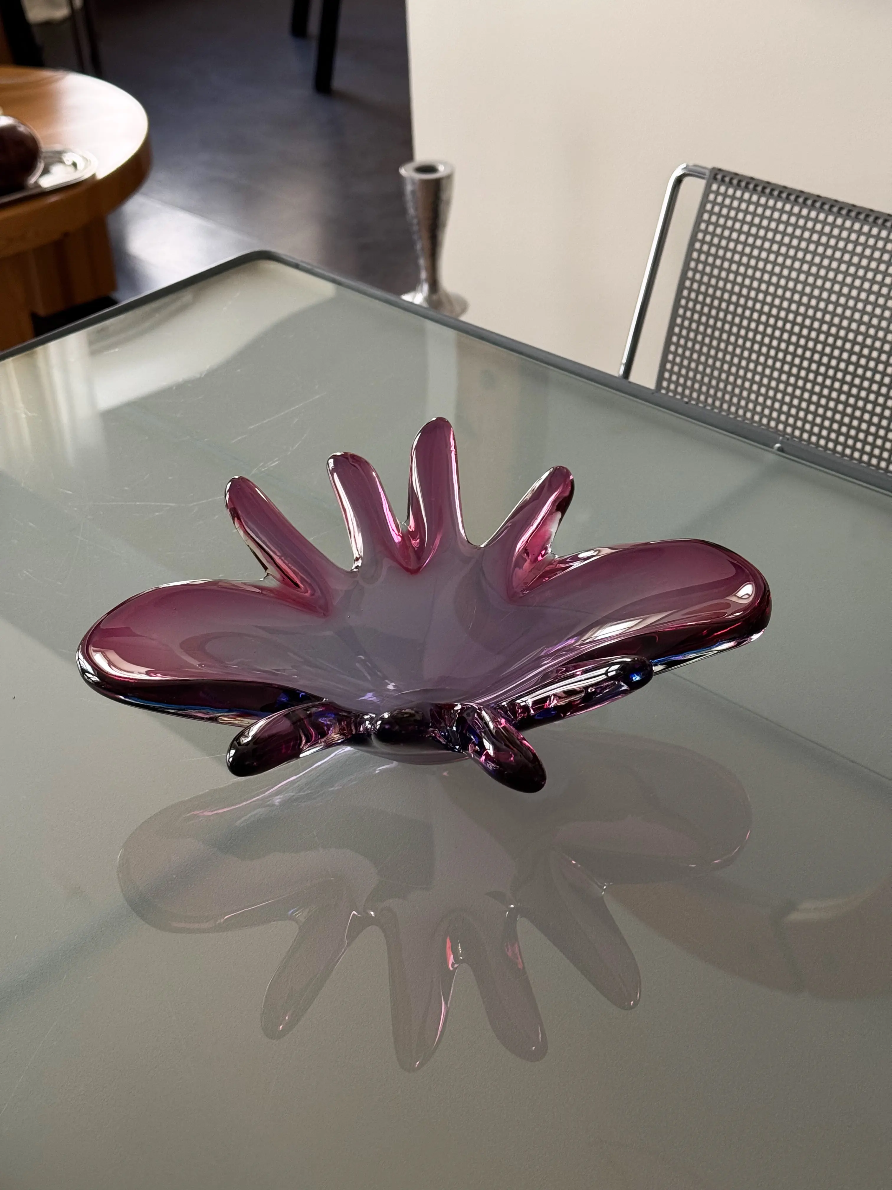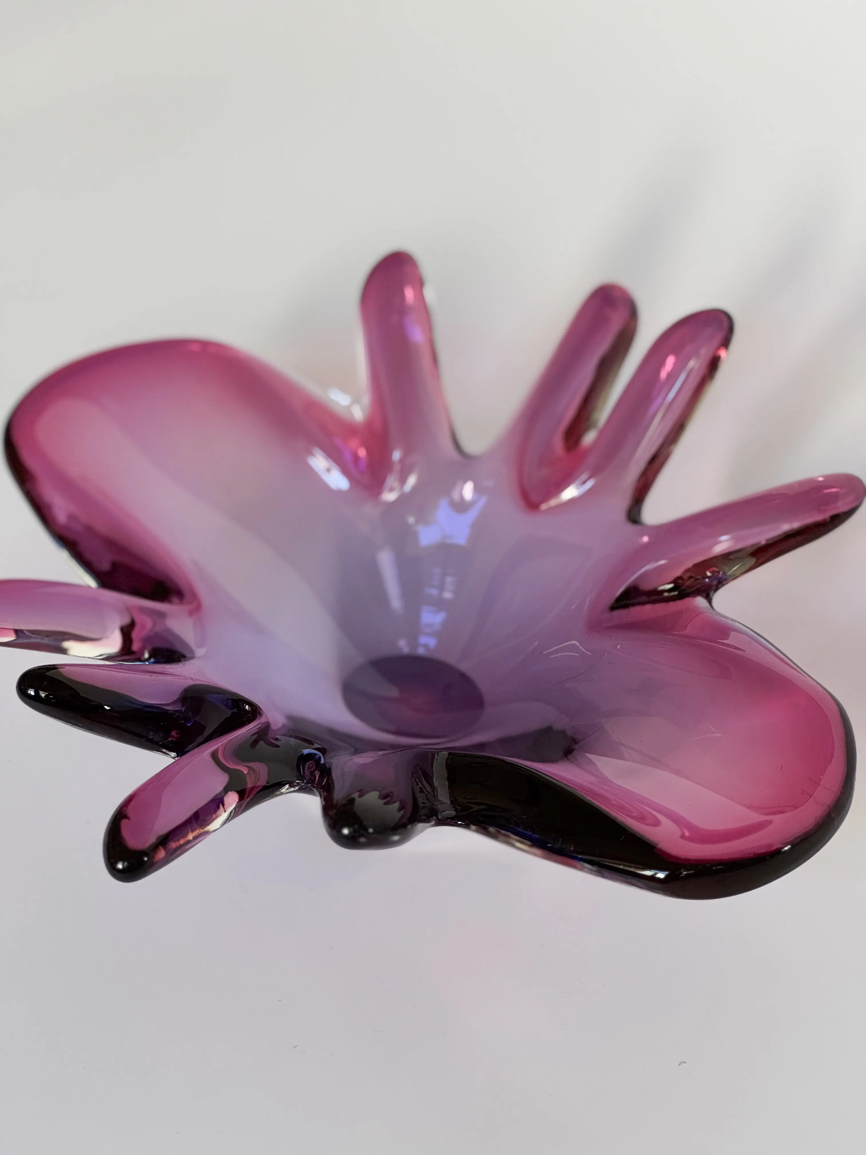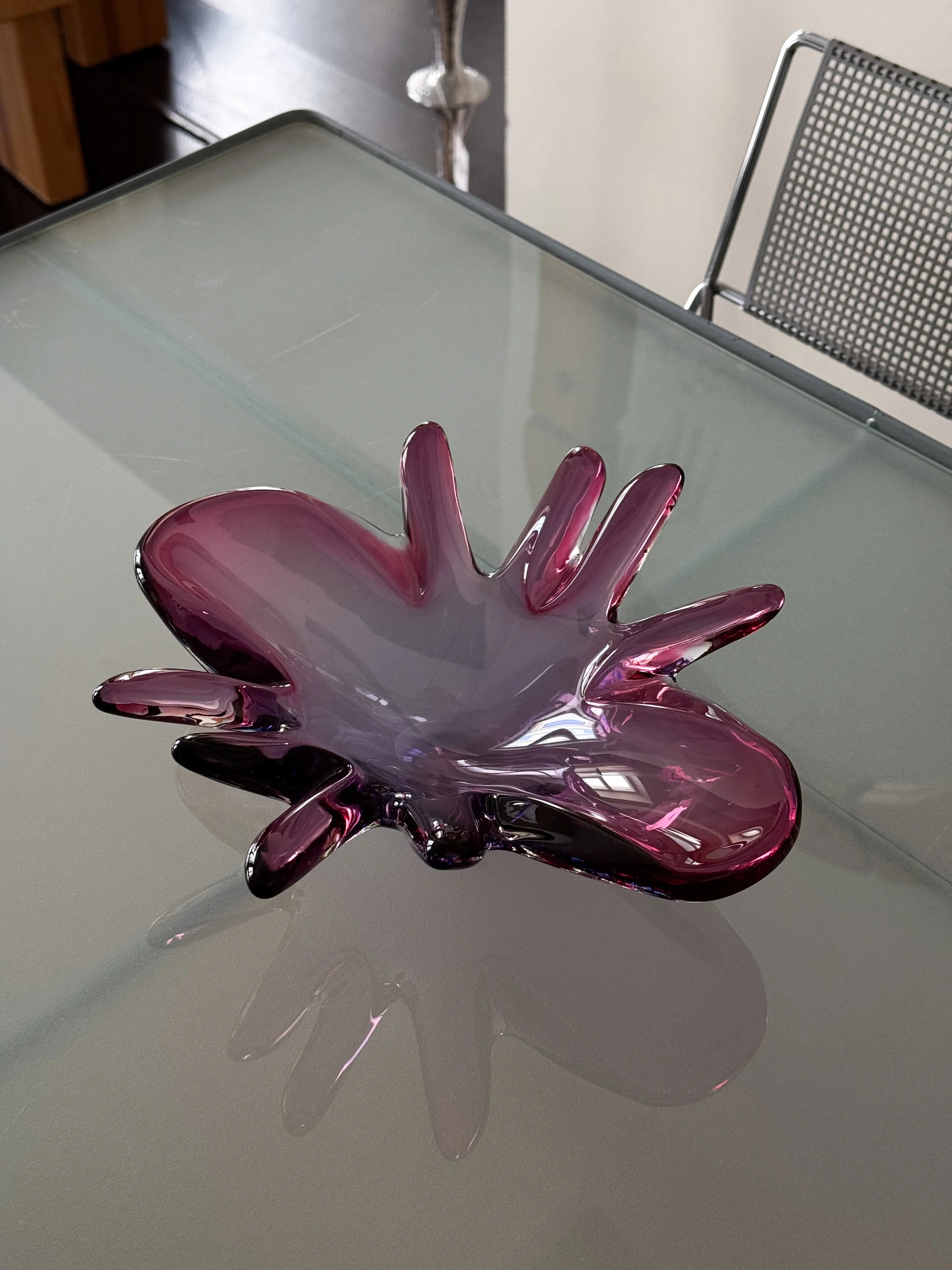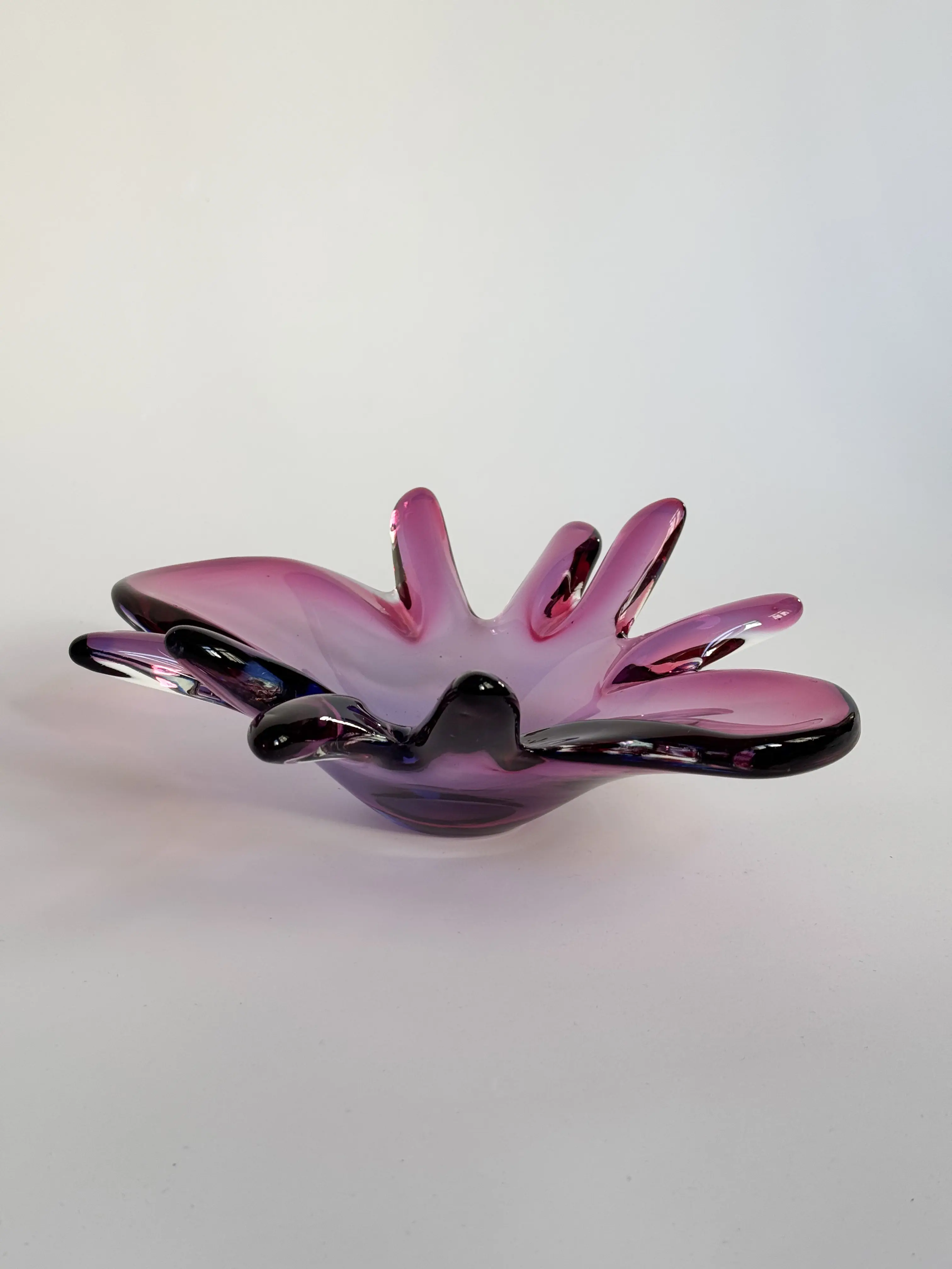 Unique handblown vintage centrepiece in thick purple and fuchsia glass. From the 1970's, made in Italy. In great vintage condition. Has been cleaned and inspected by Mendera.