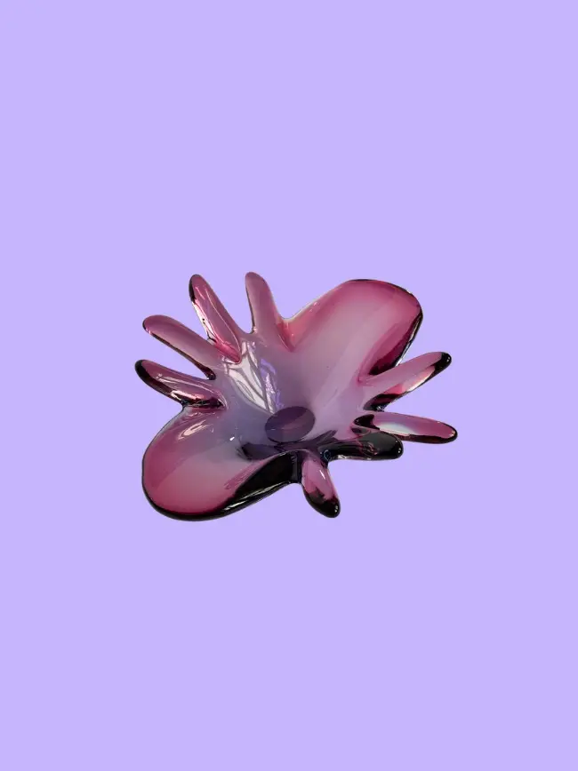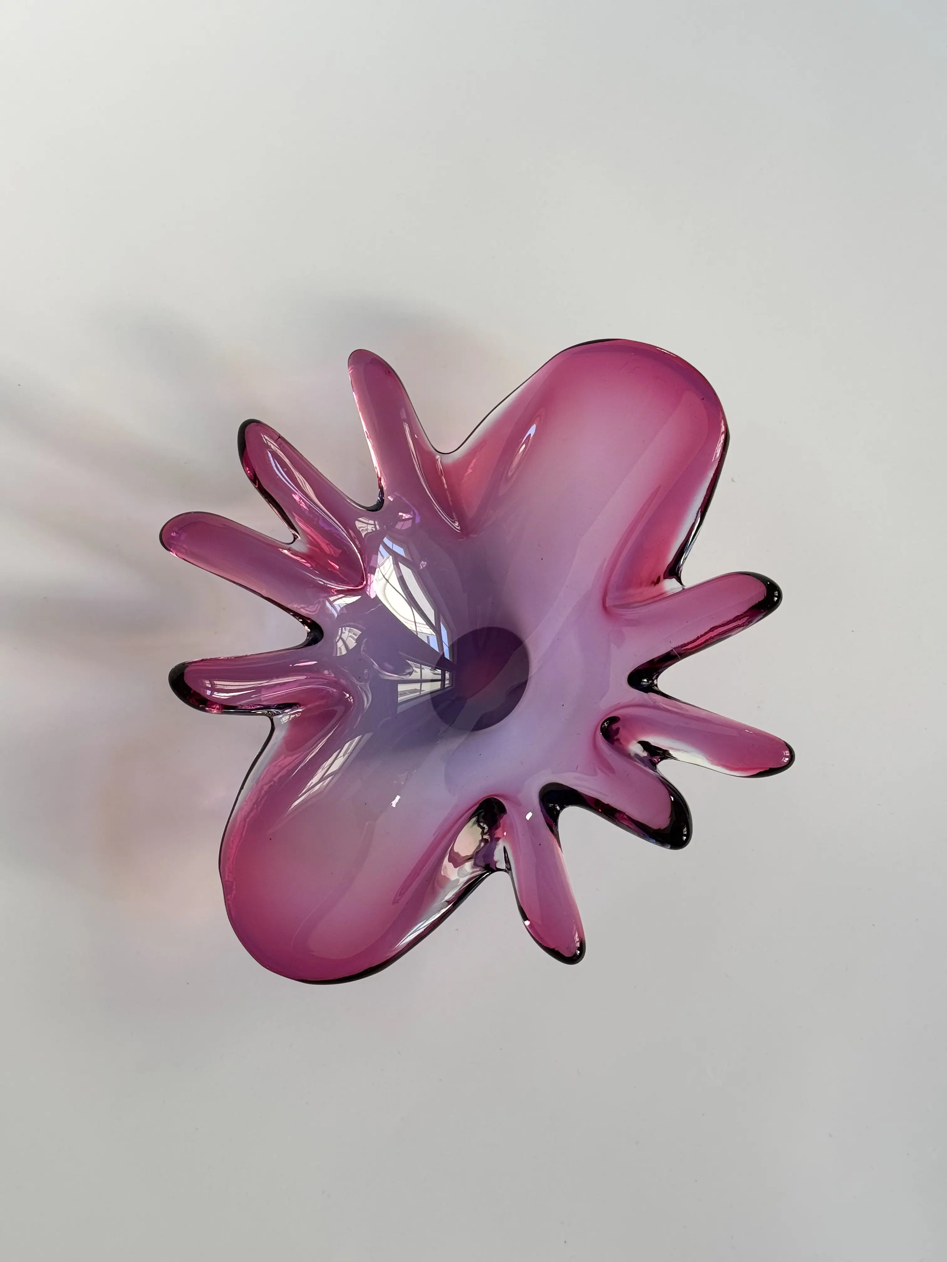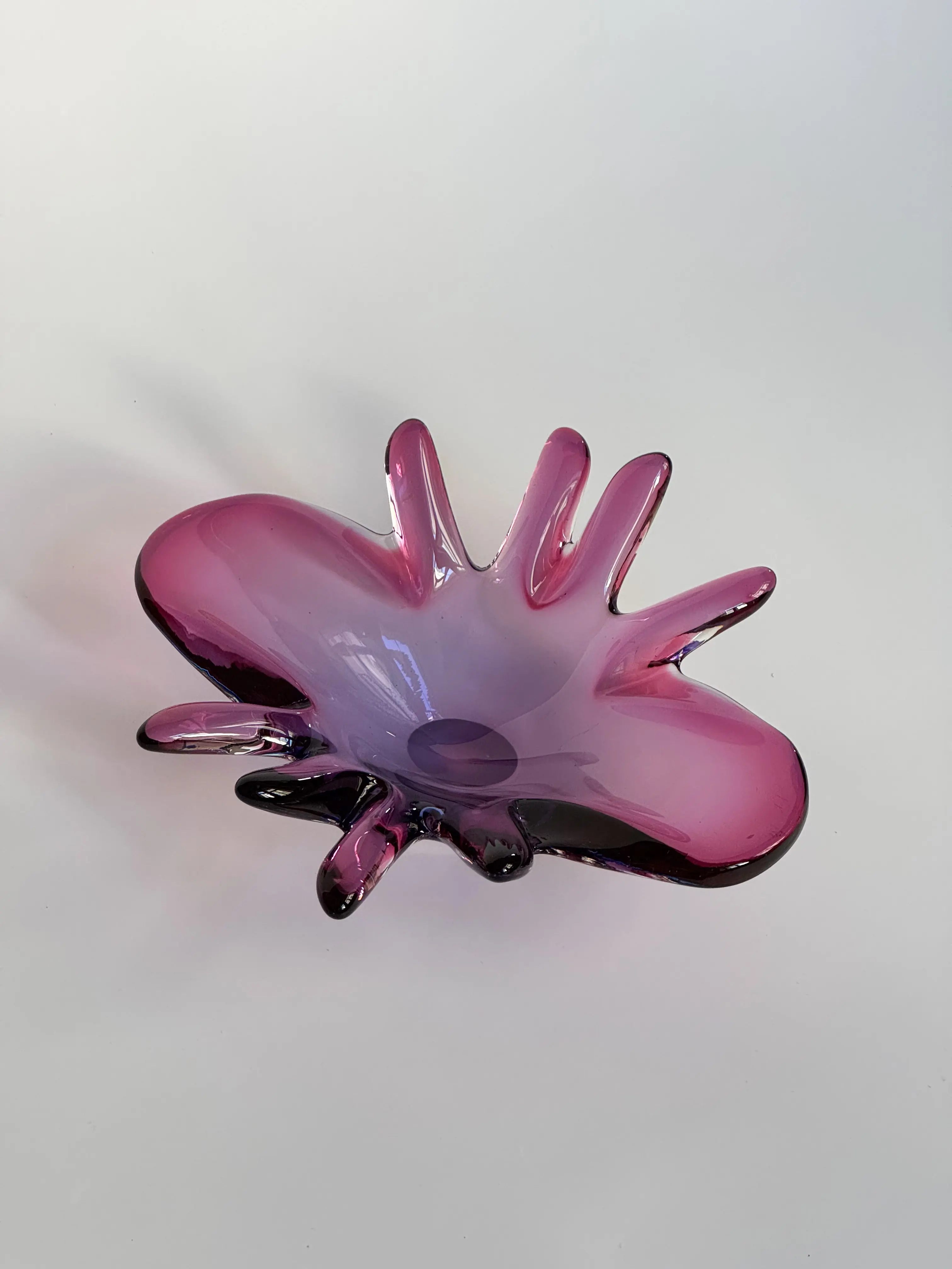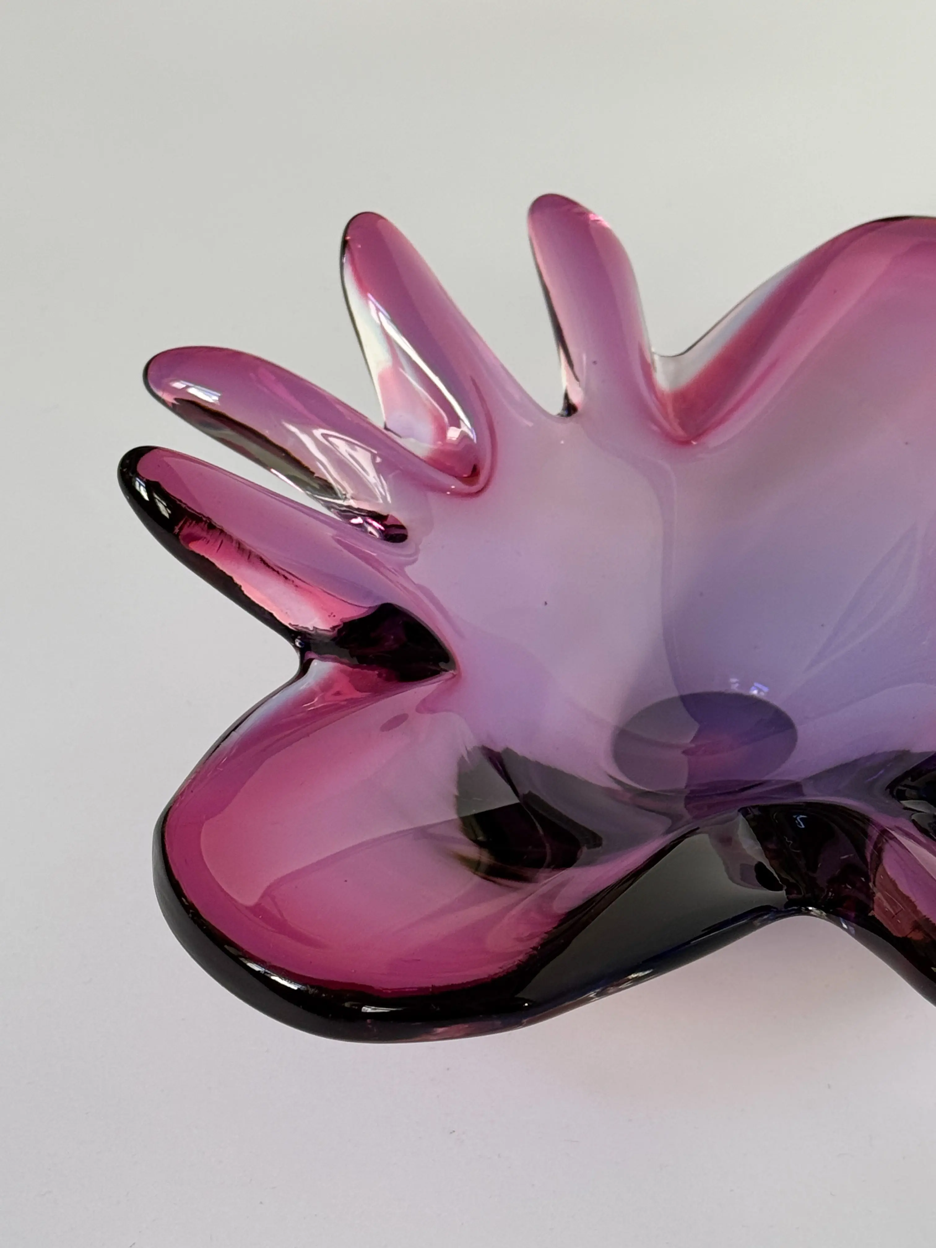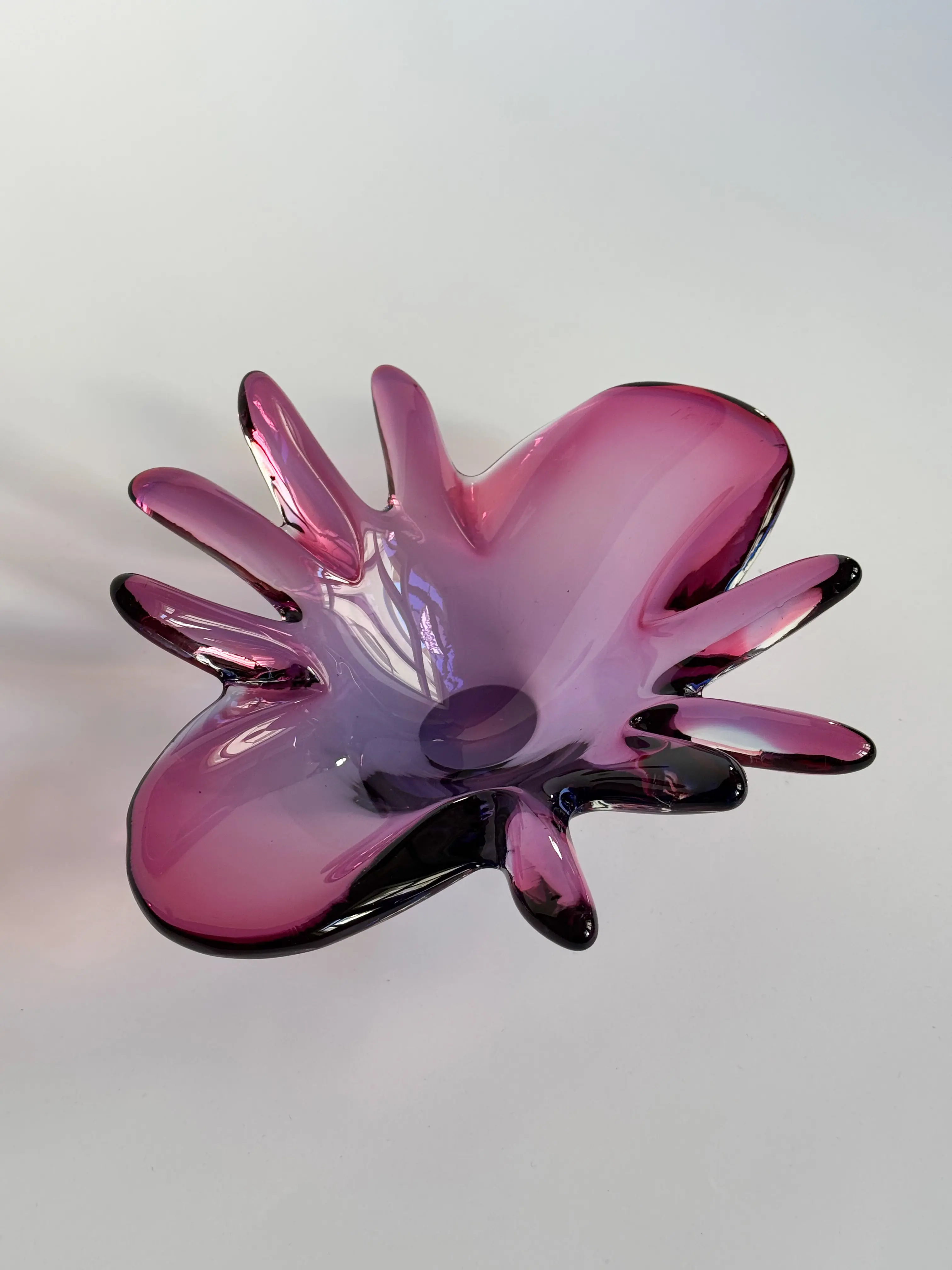 Unique handblown vintage centrepiece in thick purple and fuchsia glass. From the 1970's, made in Italy. In great vintage condition. Has been cleaned and inspected by Mendera.