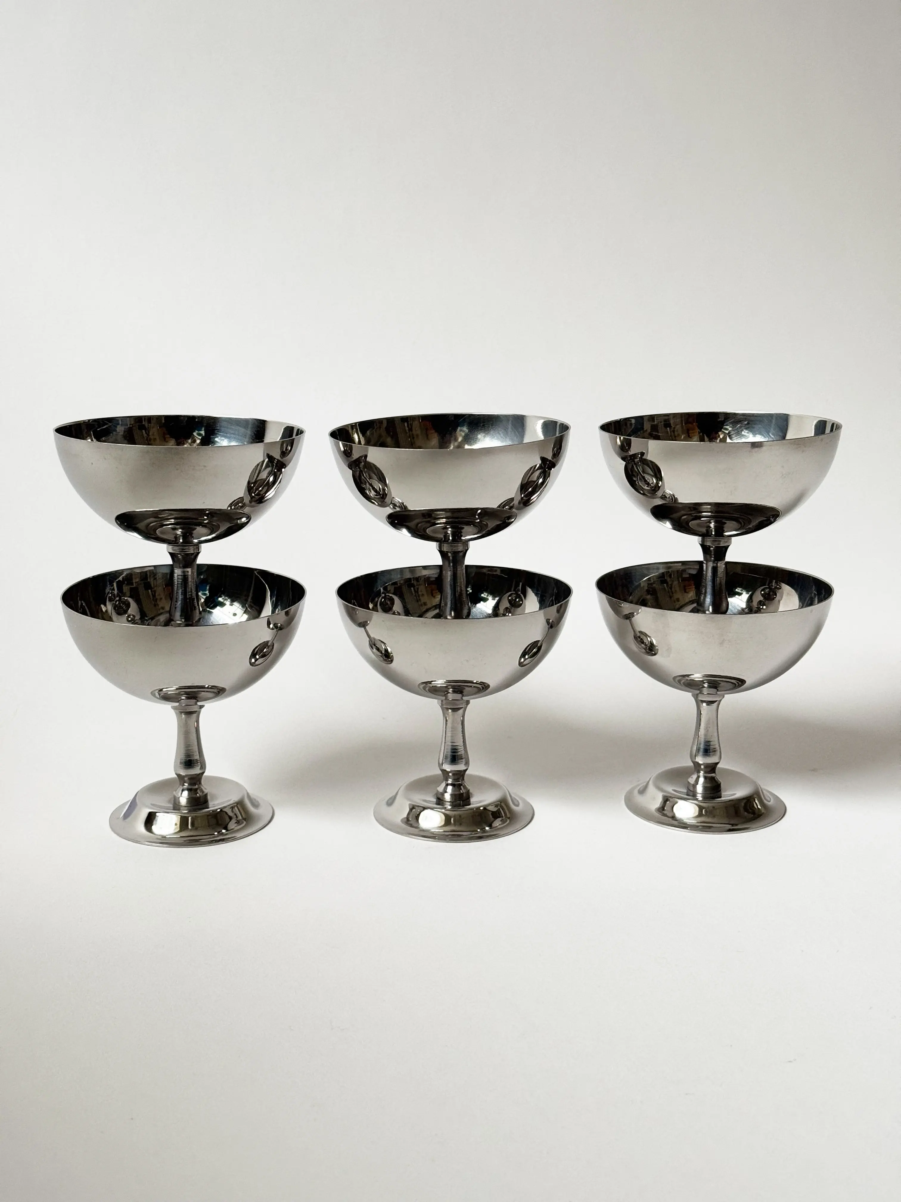 High quality Italian stainless steel gelato / dessert / drink cups. Great design for multiple ways to use. Set of 6, sold together. In good vintage condition. Has been cleaned and inspected by Mendera.