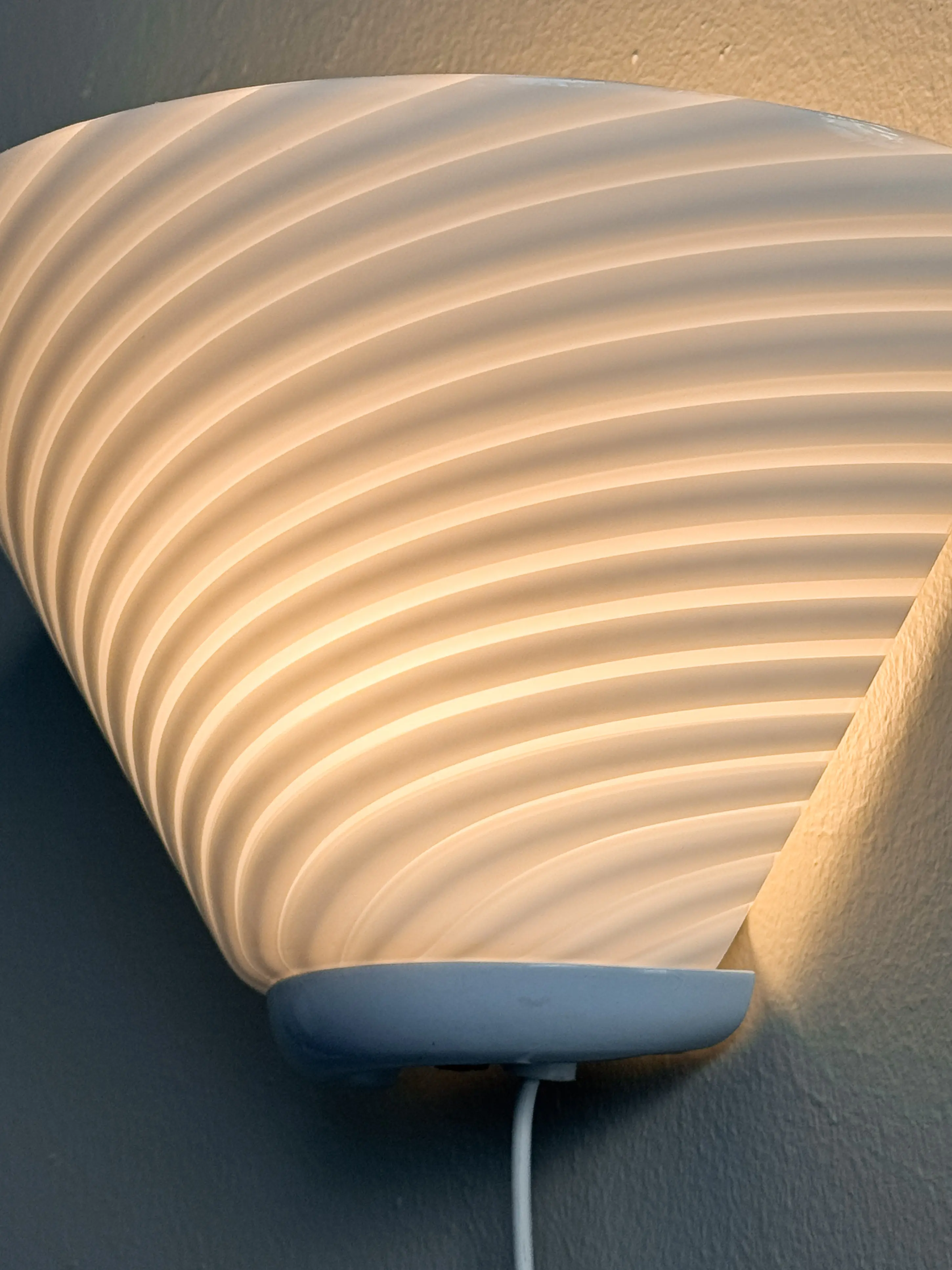 Vintage Murano wall lamp from the 1970's, made in Italy. Handblown swirl glass and powder coated metal frame. In great condition. Has been cleaned, inspected and tested by Mendera. More details below.