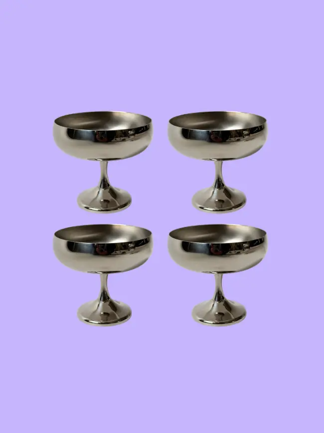 High quality Italian gelato cups by AMC Art Design. Nice larger size. Set of 4, sold together. Stainless steel, AMC label at the bottom. Dishwasher proof. In good vintage condition. Has been cleaned an inspected by Mendera.
