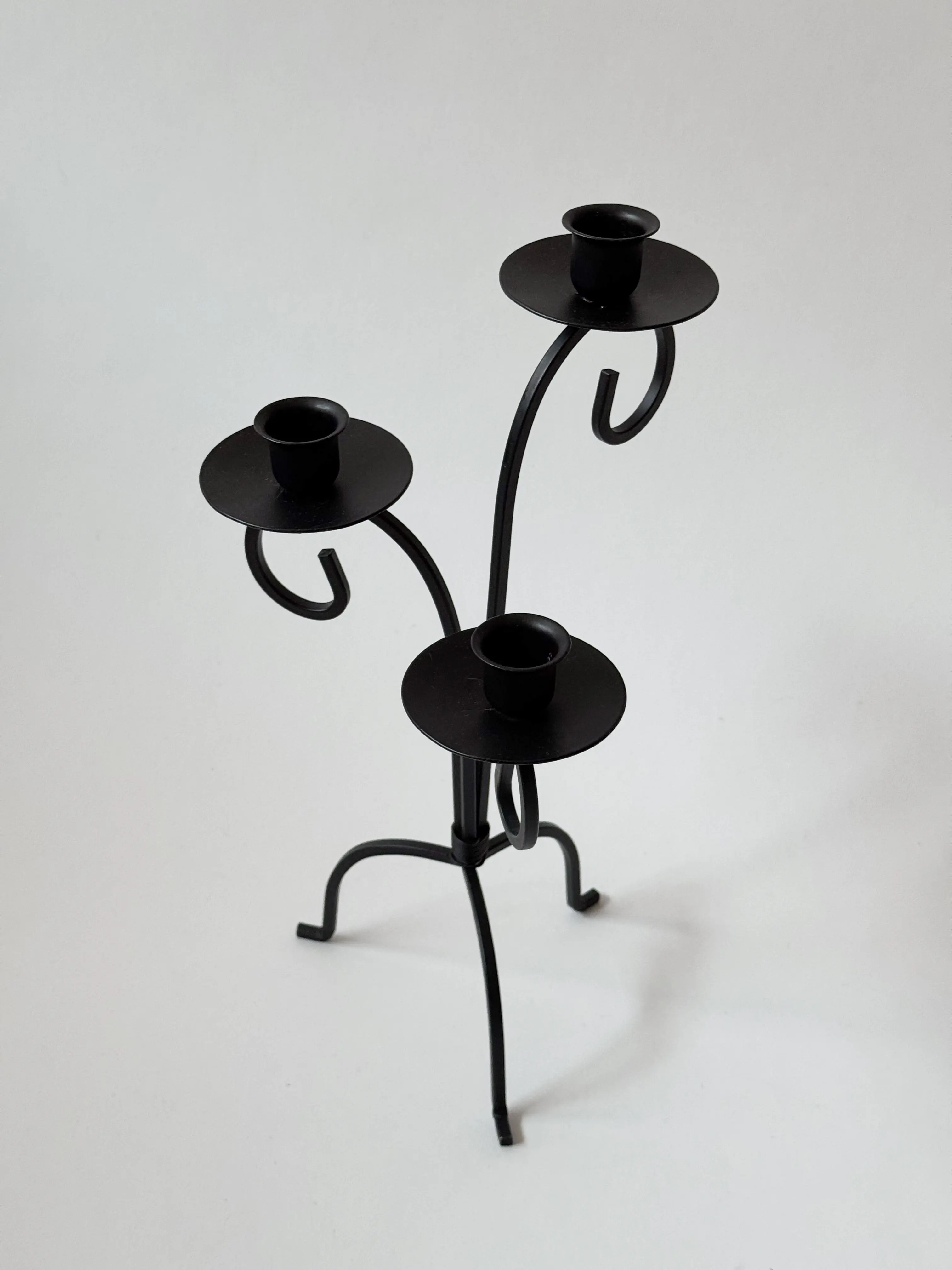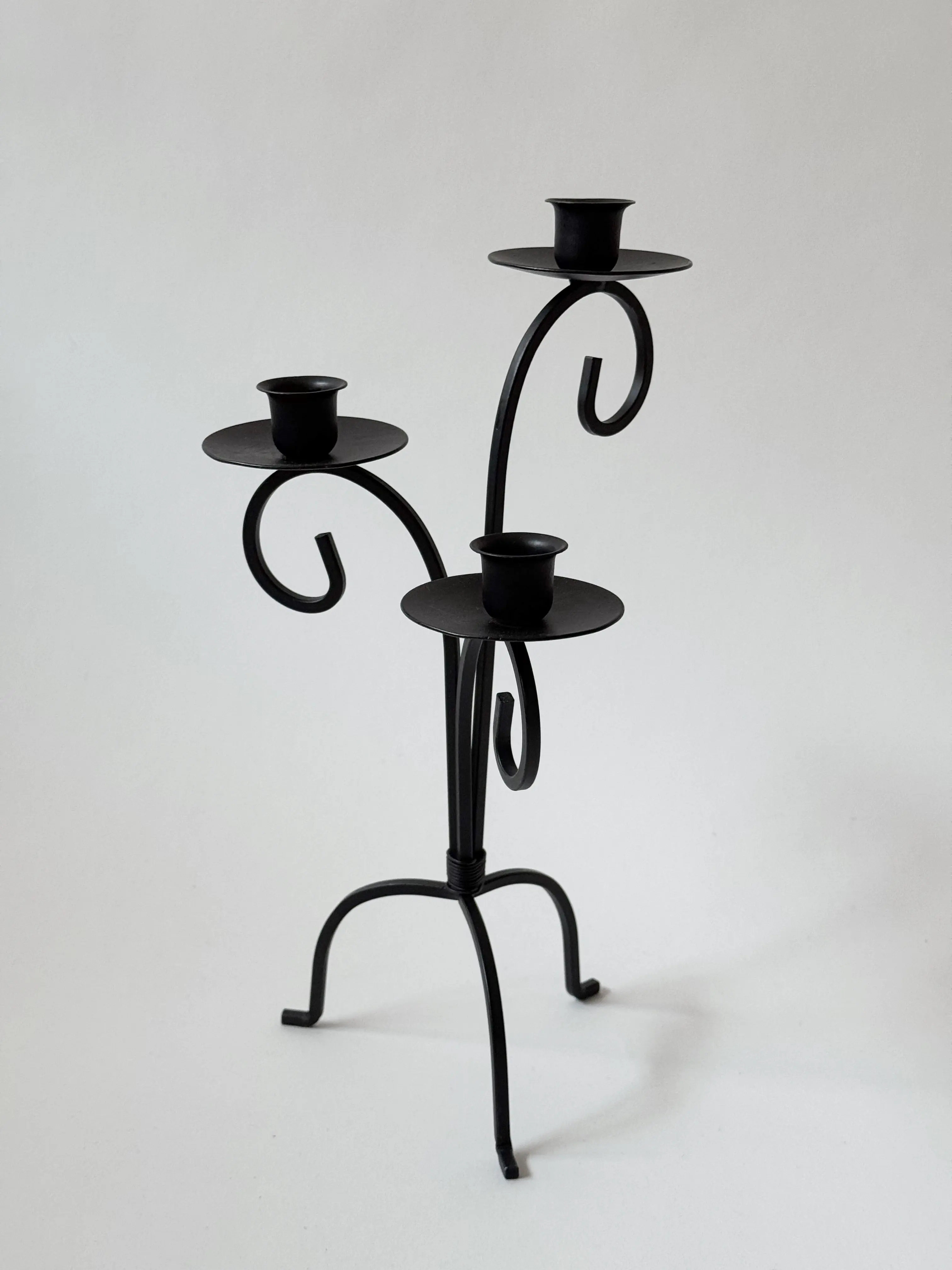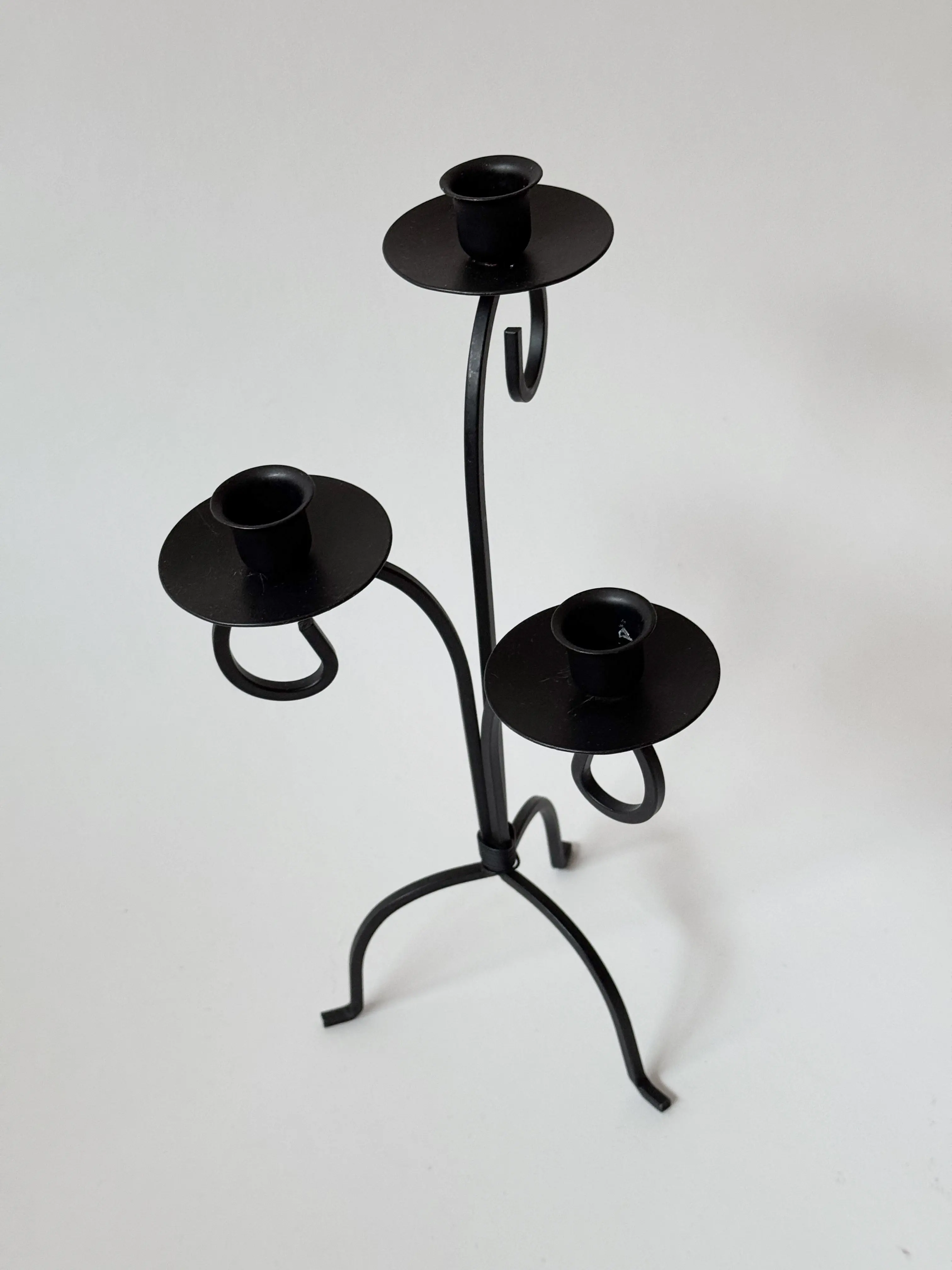 Black metallic vintage candlestick. In great condition. Has been cleaned and inspected by Mendera.