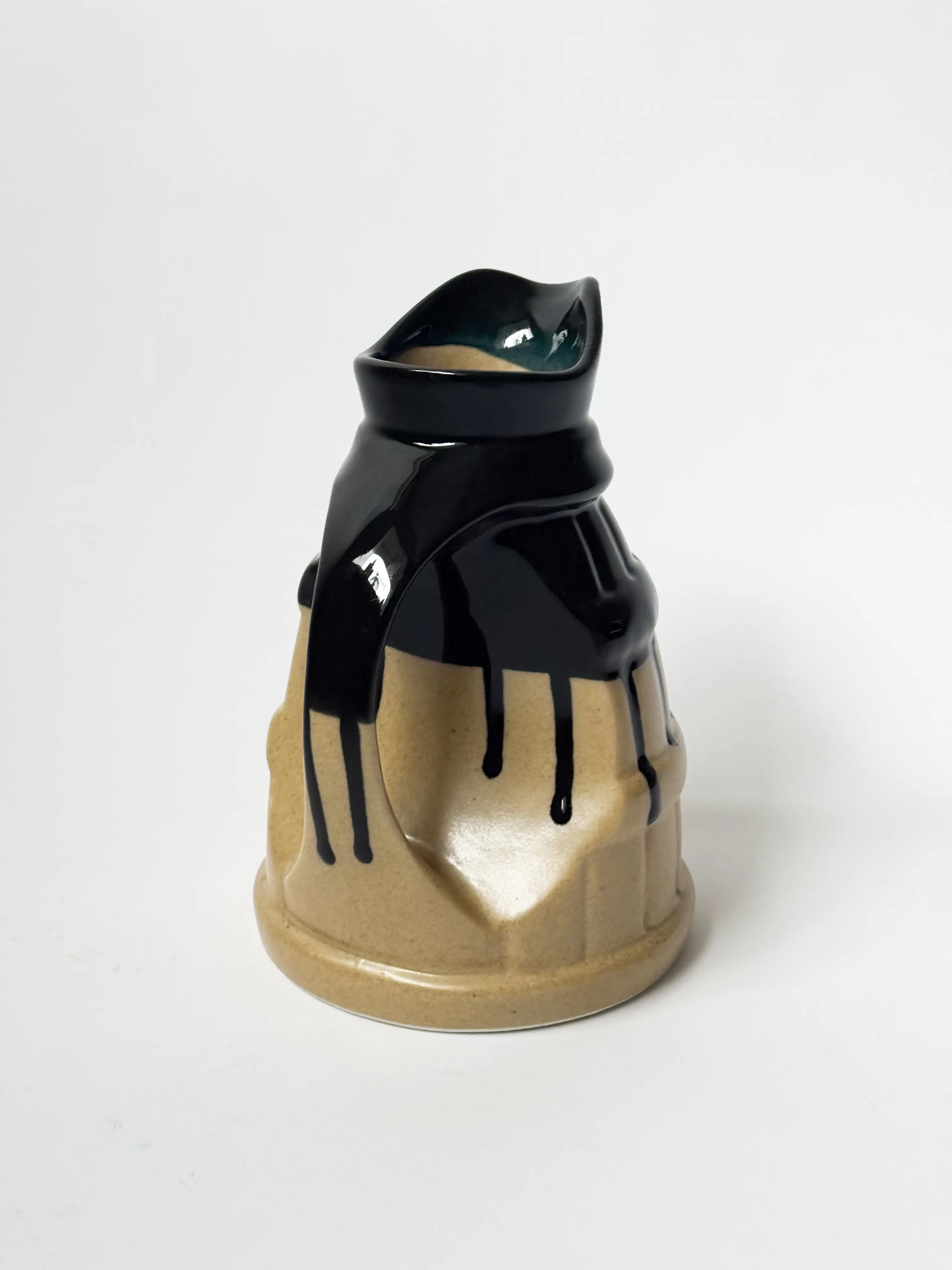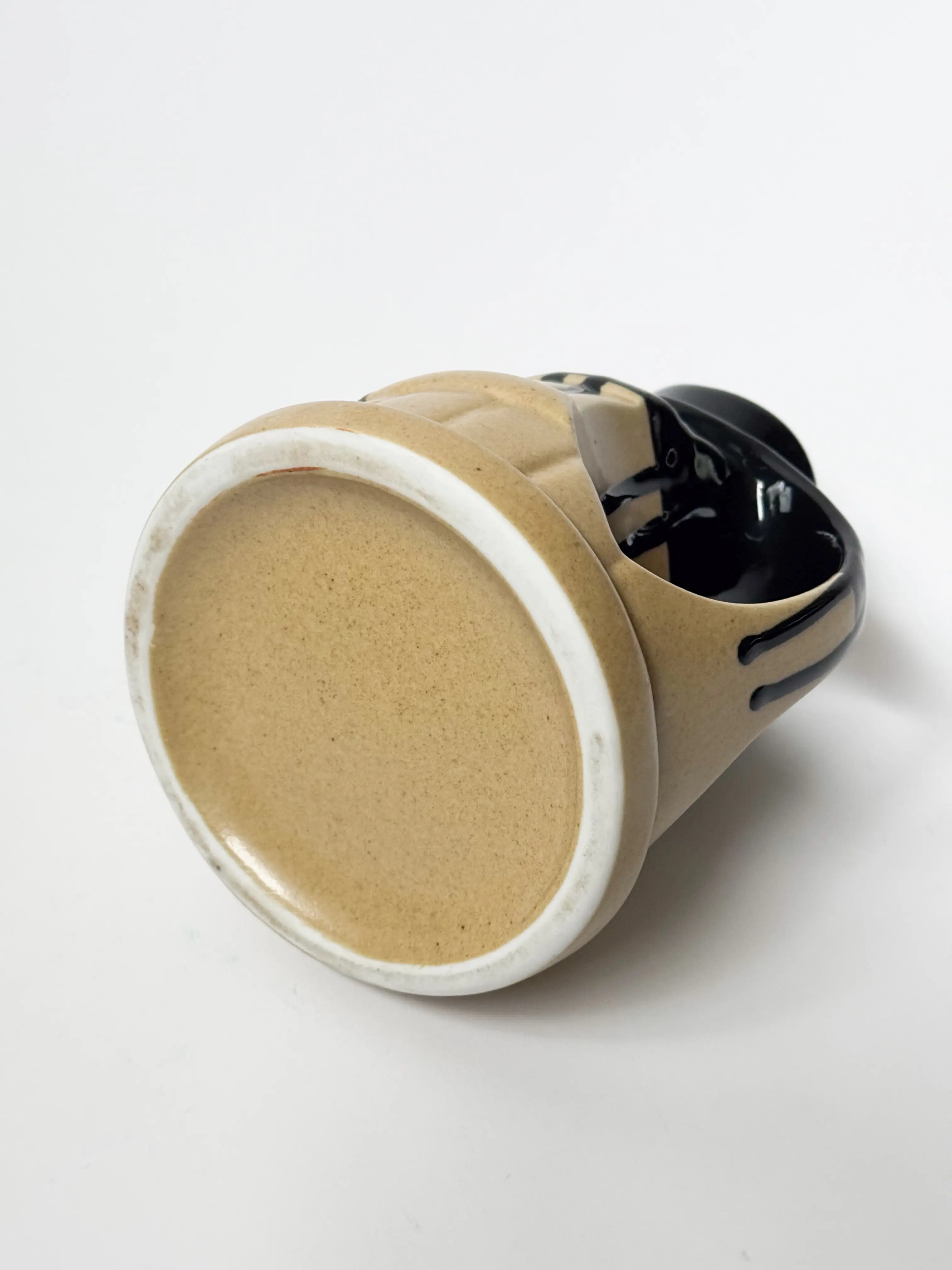 Spanish vintage jug in beige and black glazed ceramic. Lovely glossy drip pattern. In great condition. Has been cleaned and inspected by Mendera.