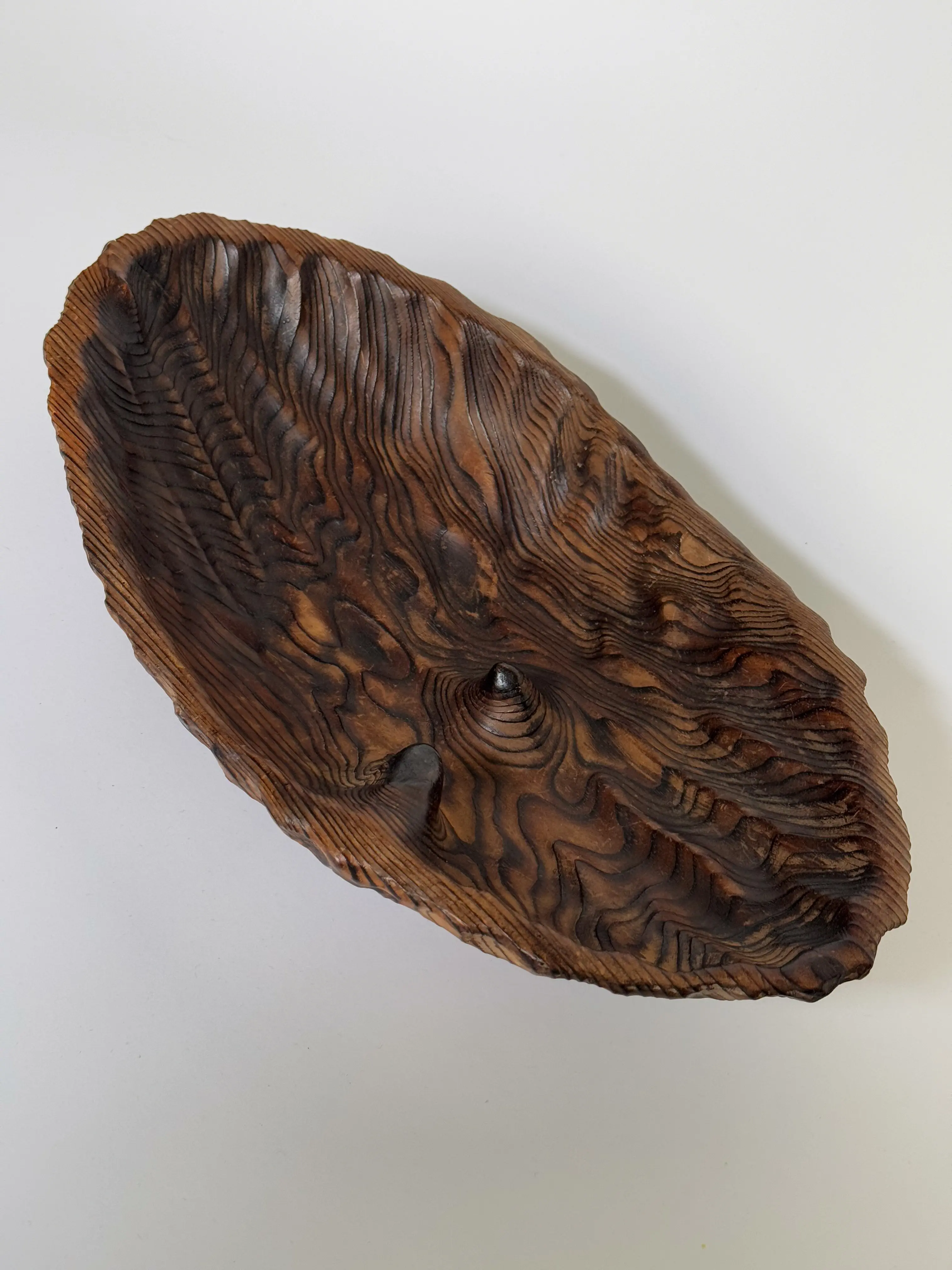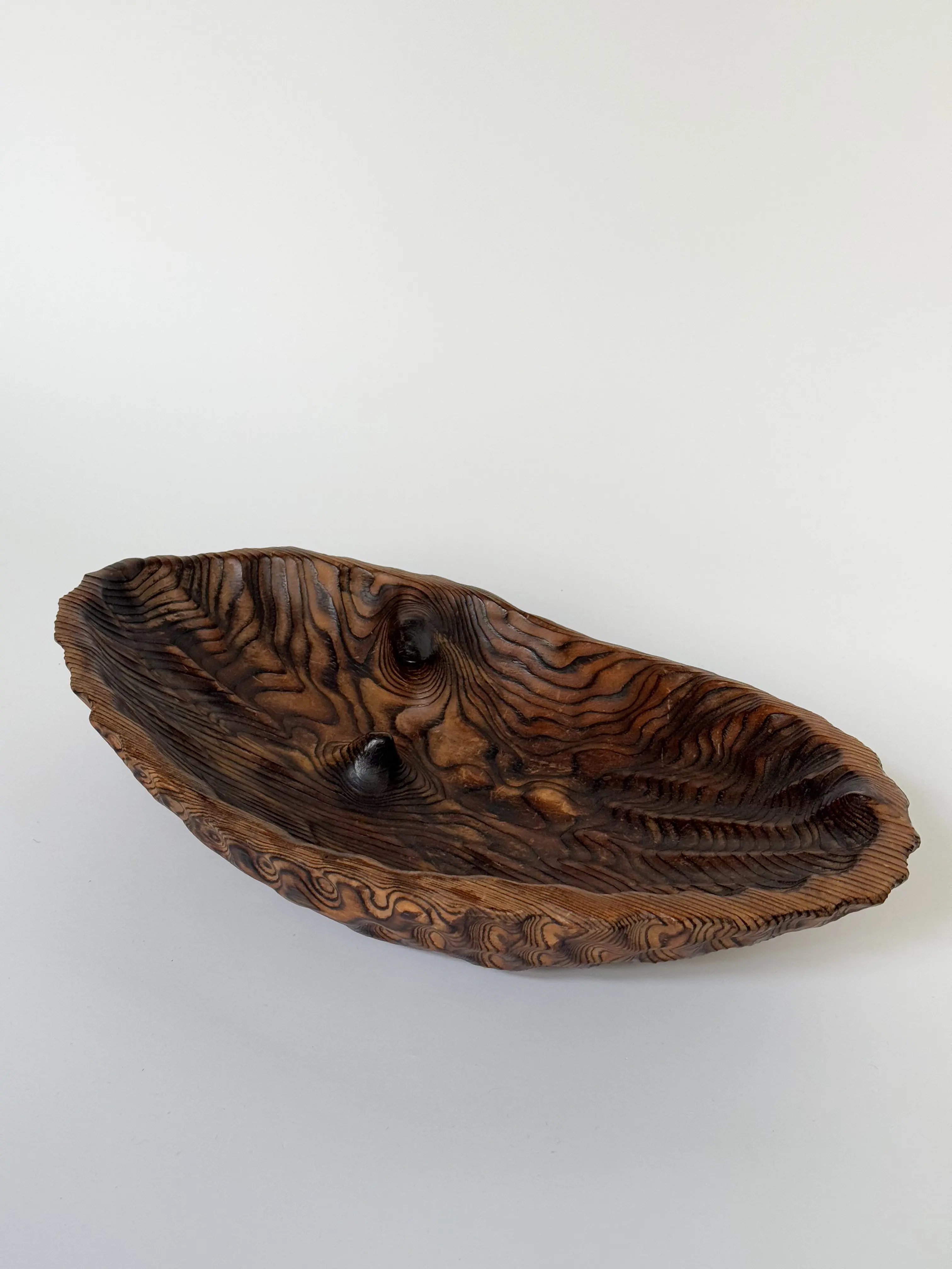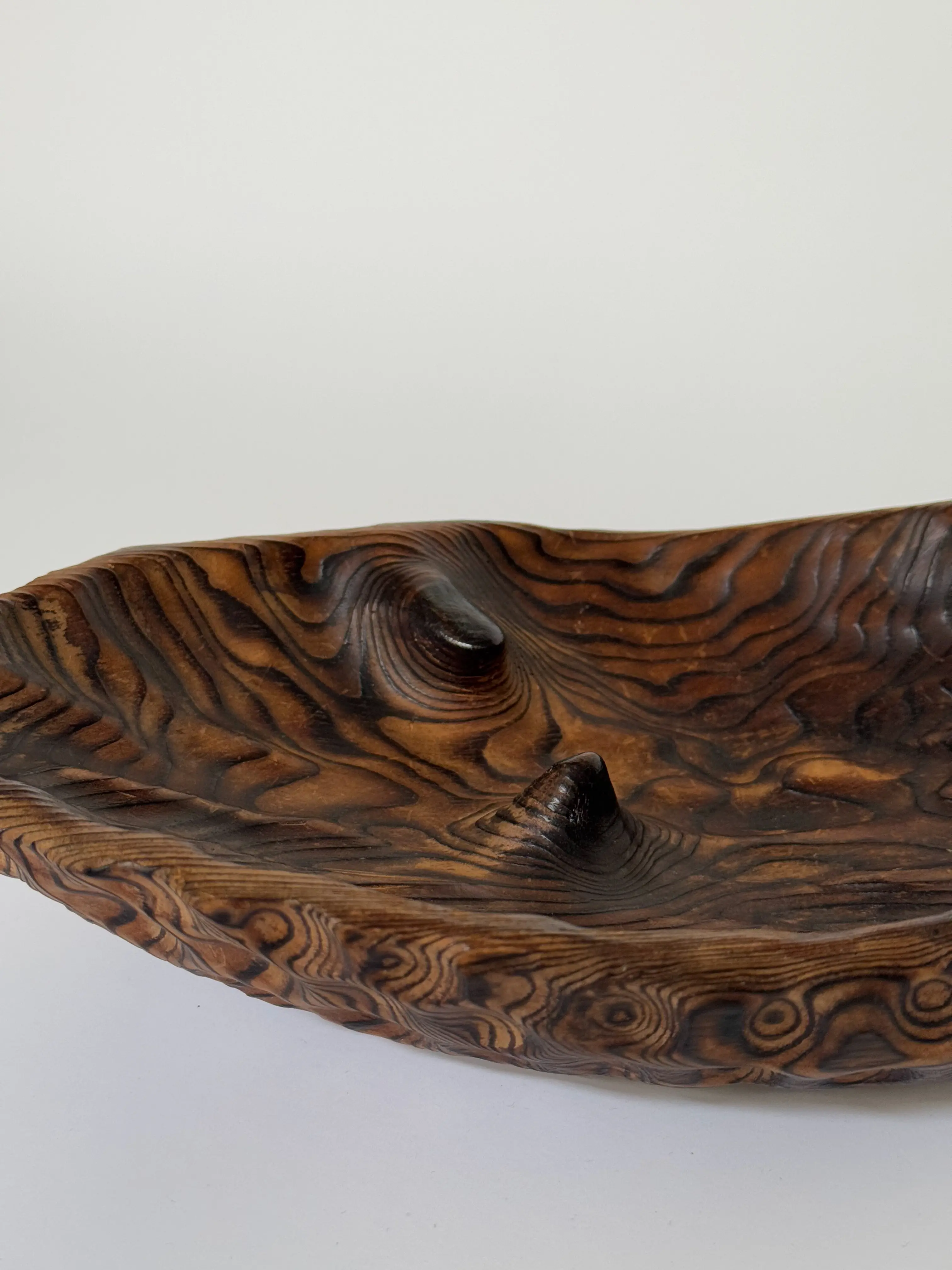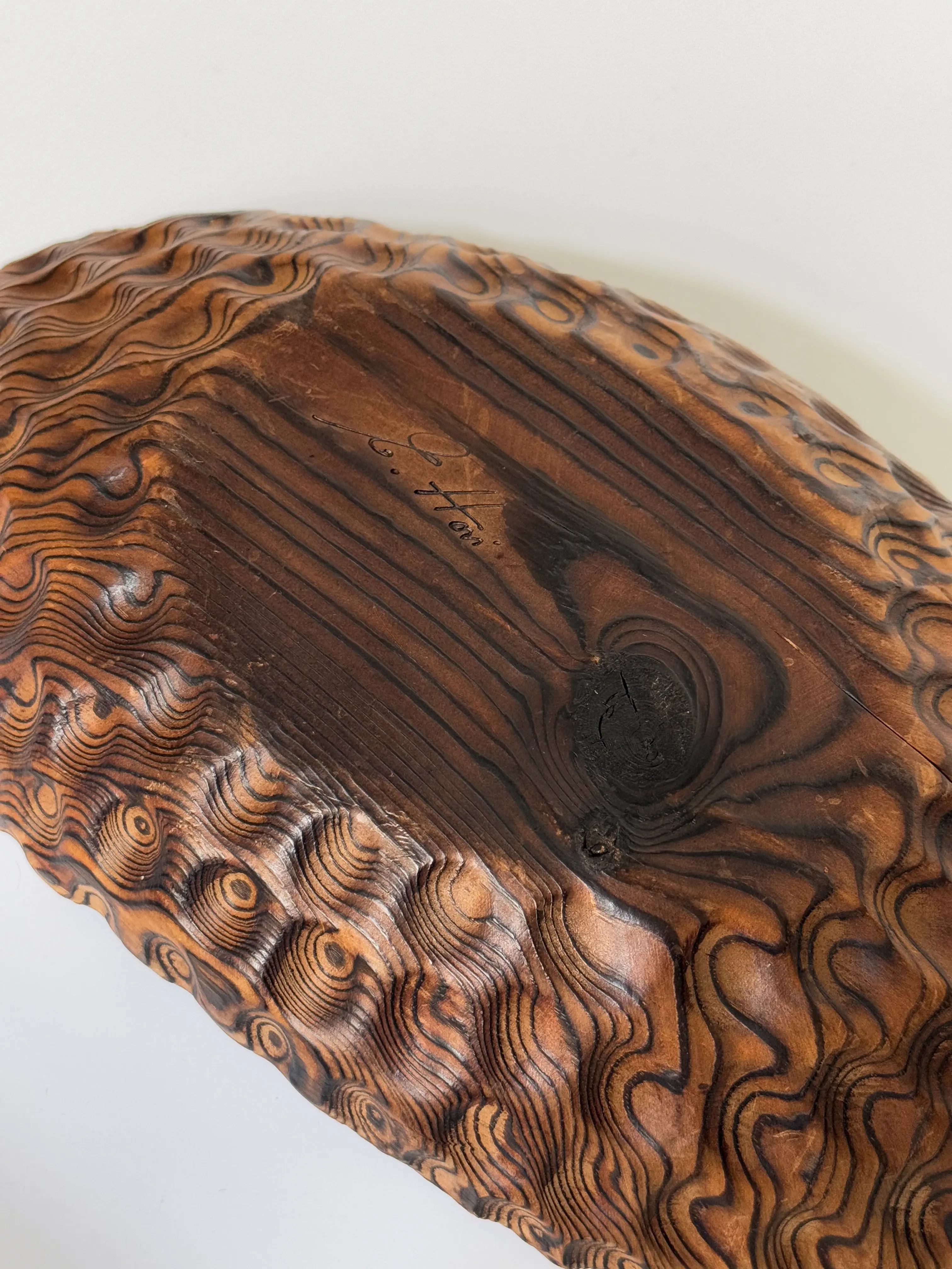 Stunning wooden centrepiece vintage bowl hand carved and signed by E. Hovi, Finland. Beautiful details, unique piece. In great condition with some patina. Has been cleaned and inspected by Mendera.
