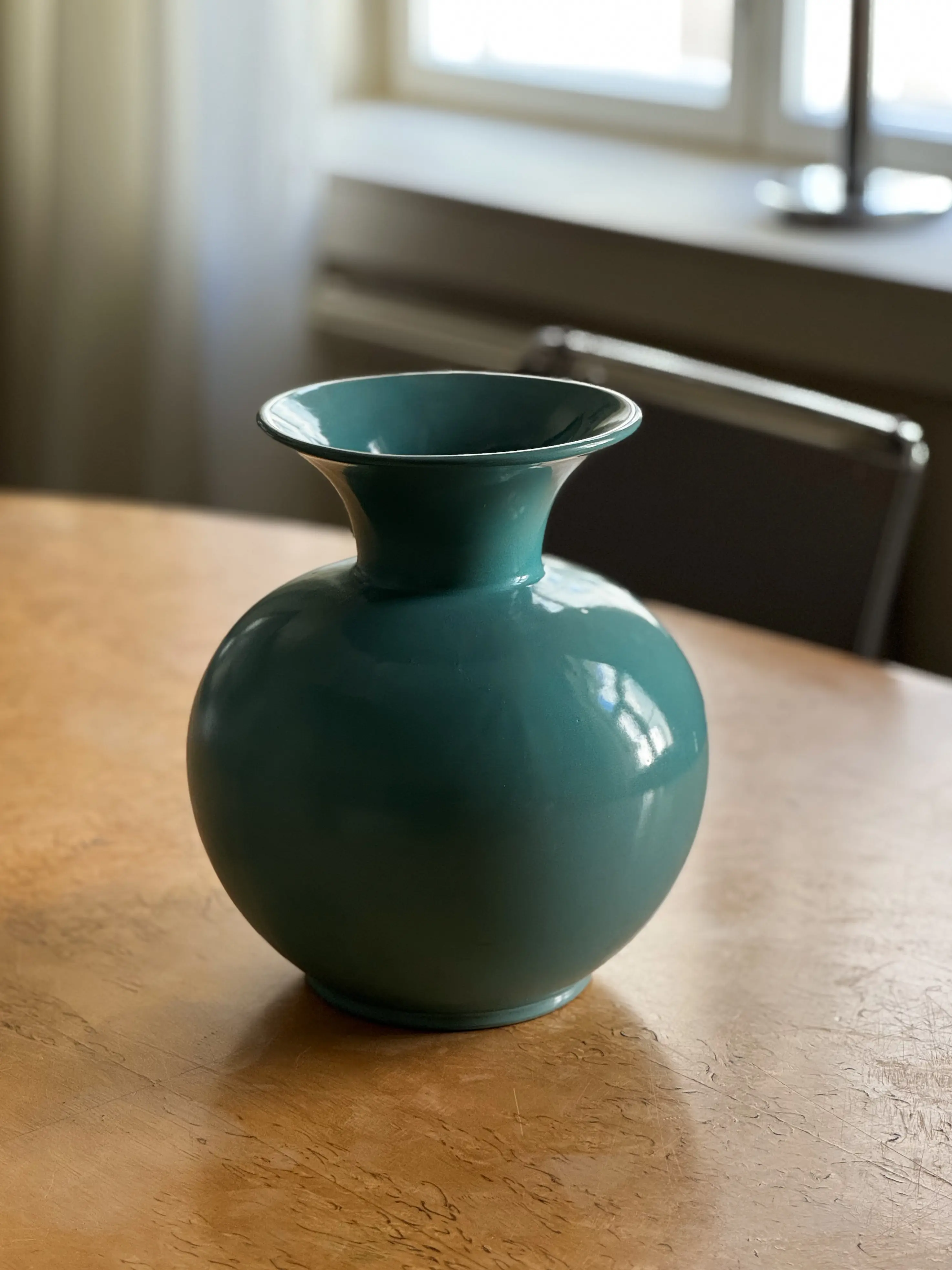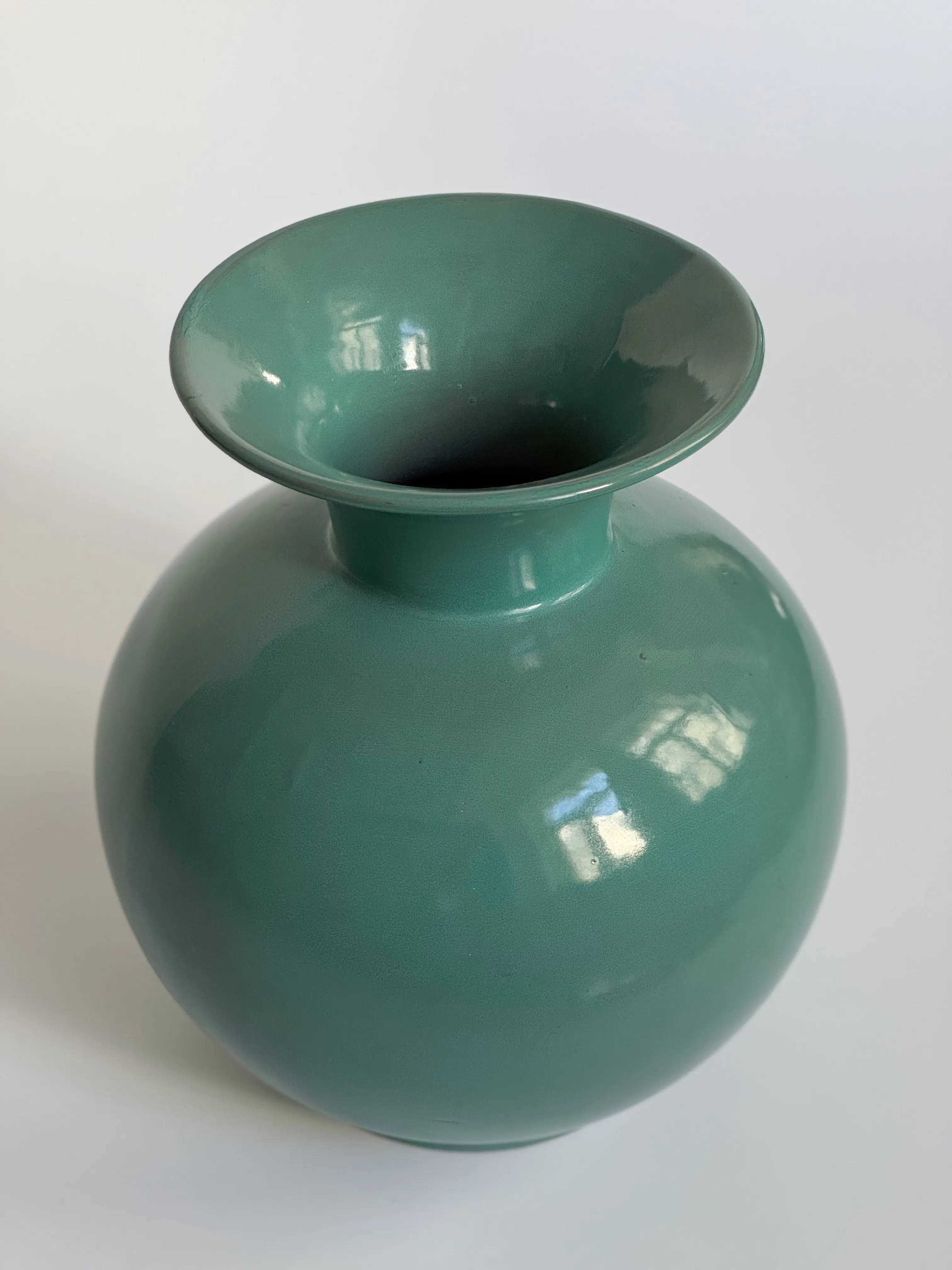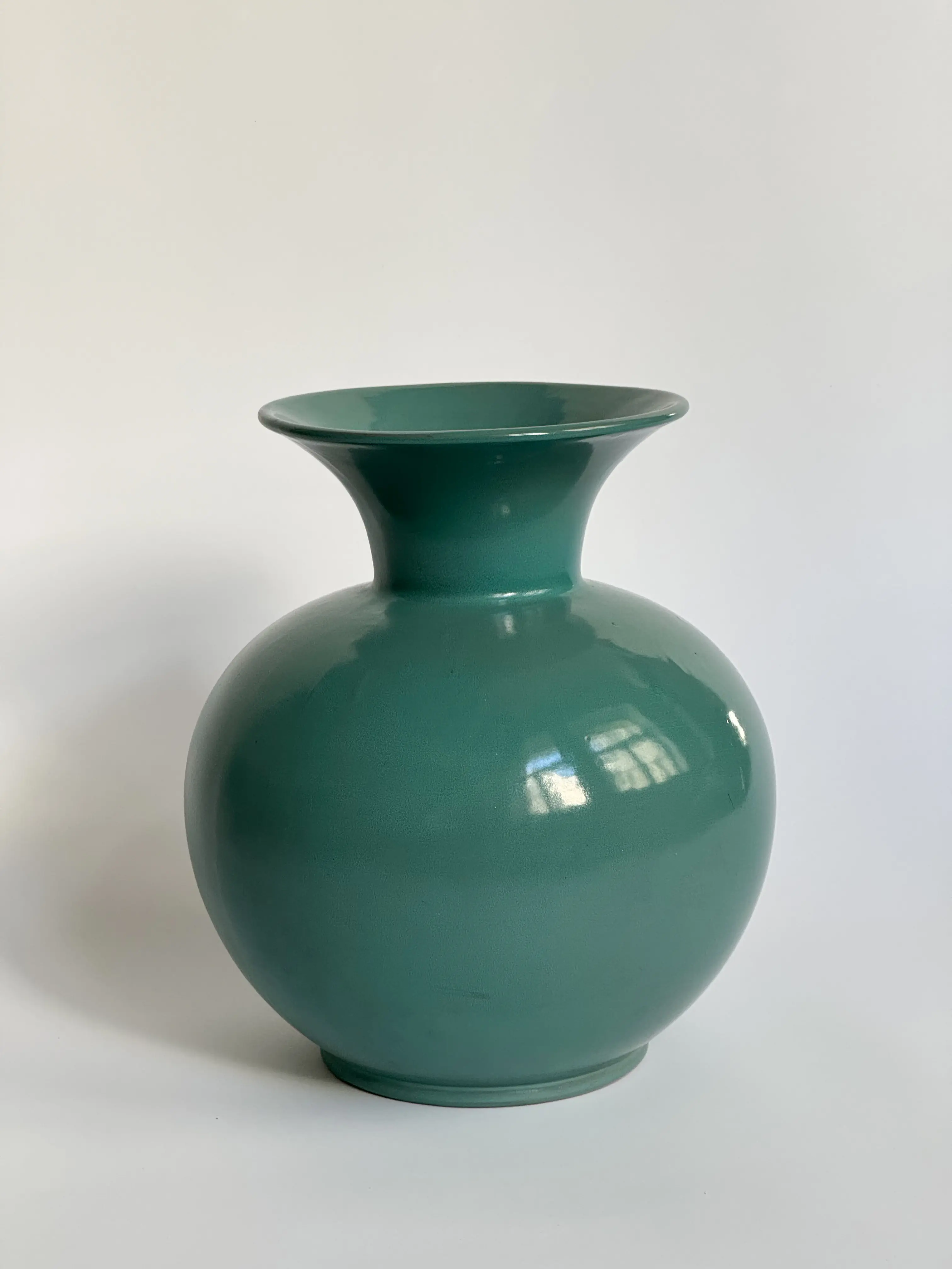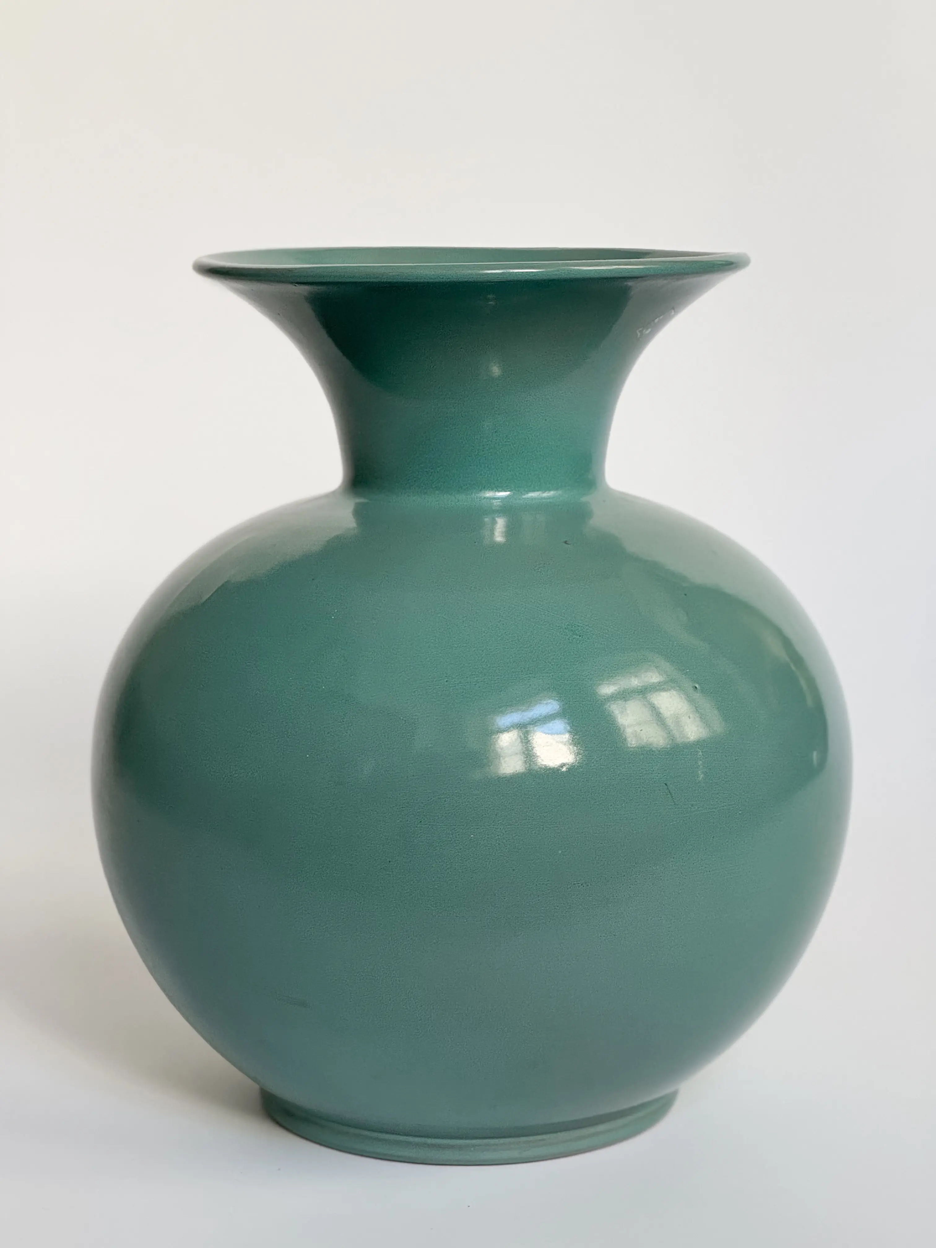 Large vintage ARA-vase by Arabia, made in Finland. Red clay in muted turquoise glazing. In great vintage condition. Has been cleaned and inspected by Mendera.