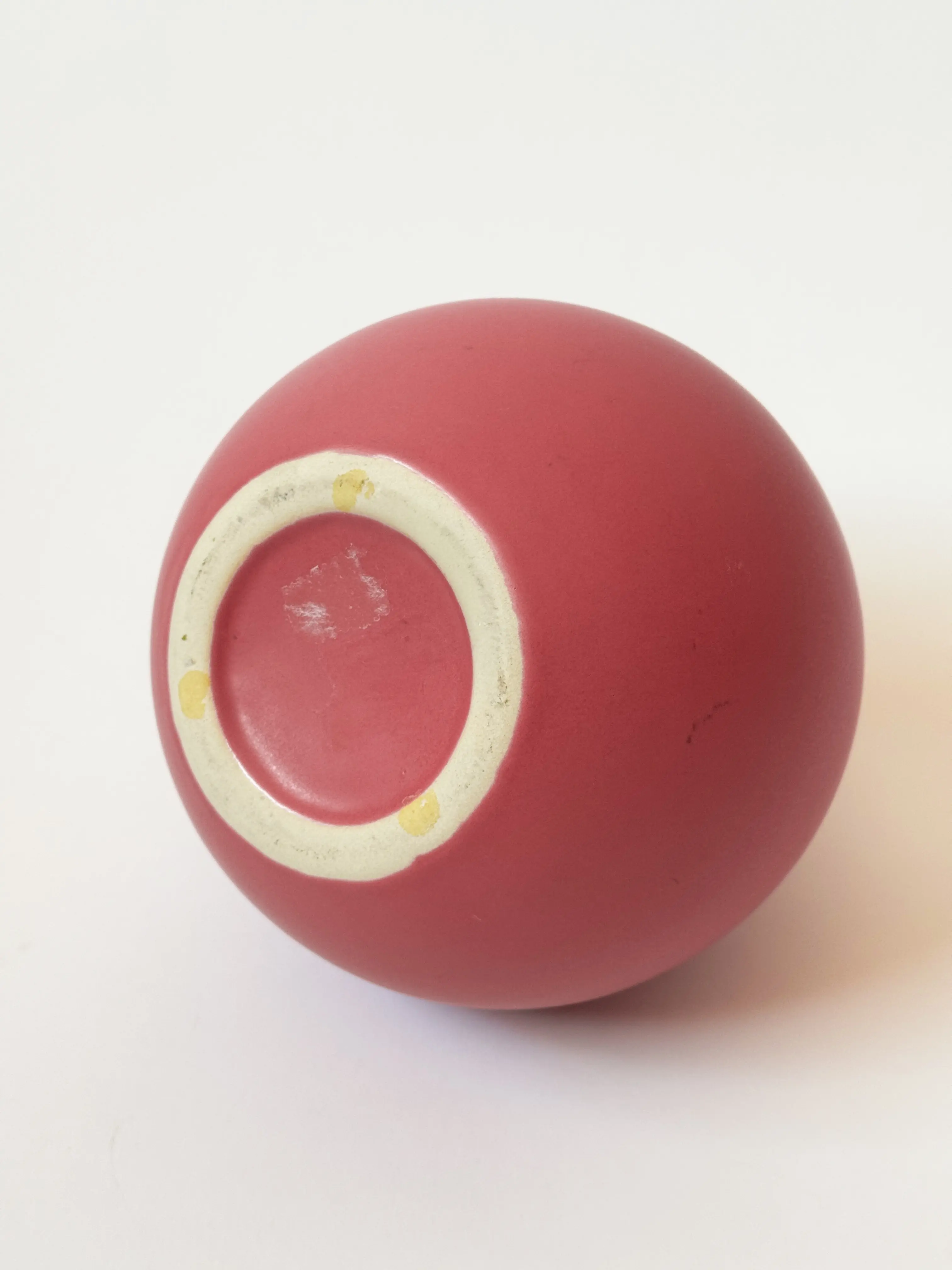 Ceramic balloon shaped vintage vase in matte rouge glazing. In great vintage condition with minor signs of patina. Has been cleaned and inspected by Mendera.