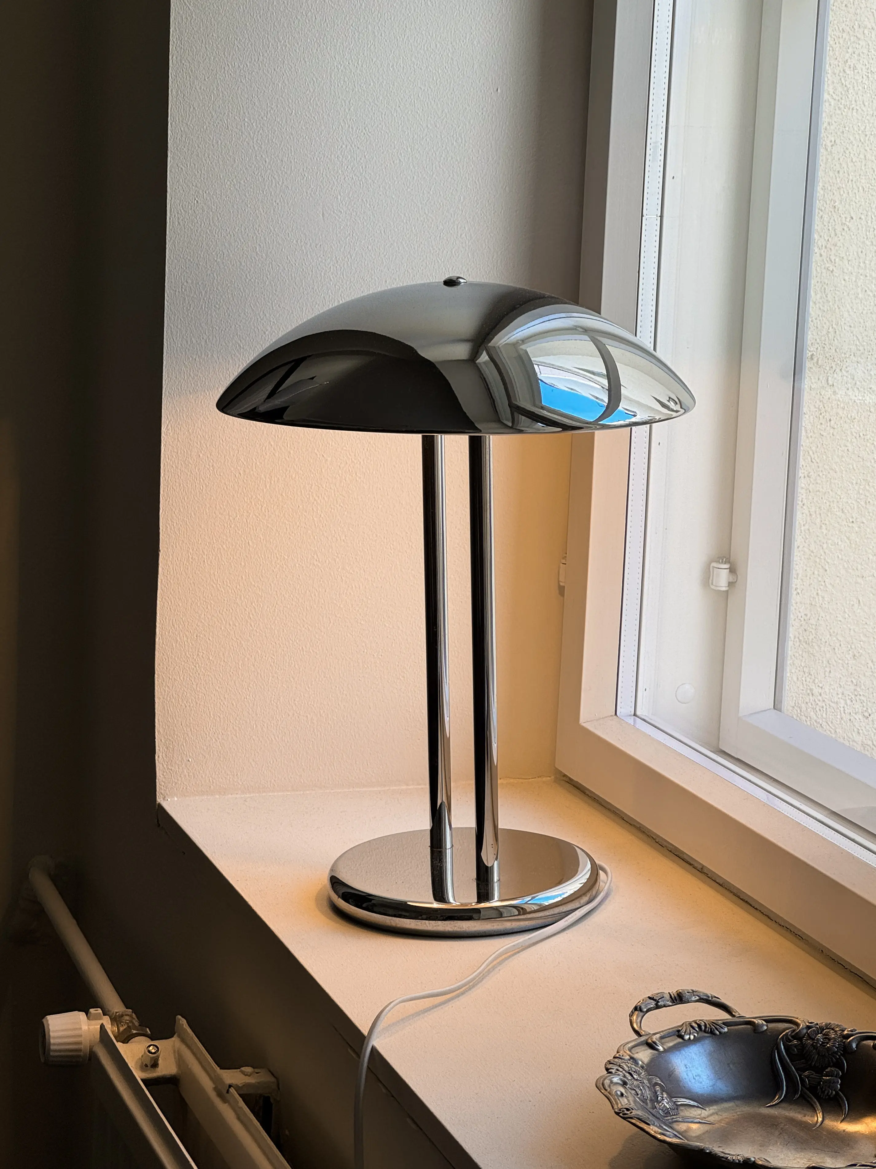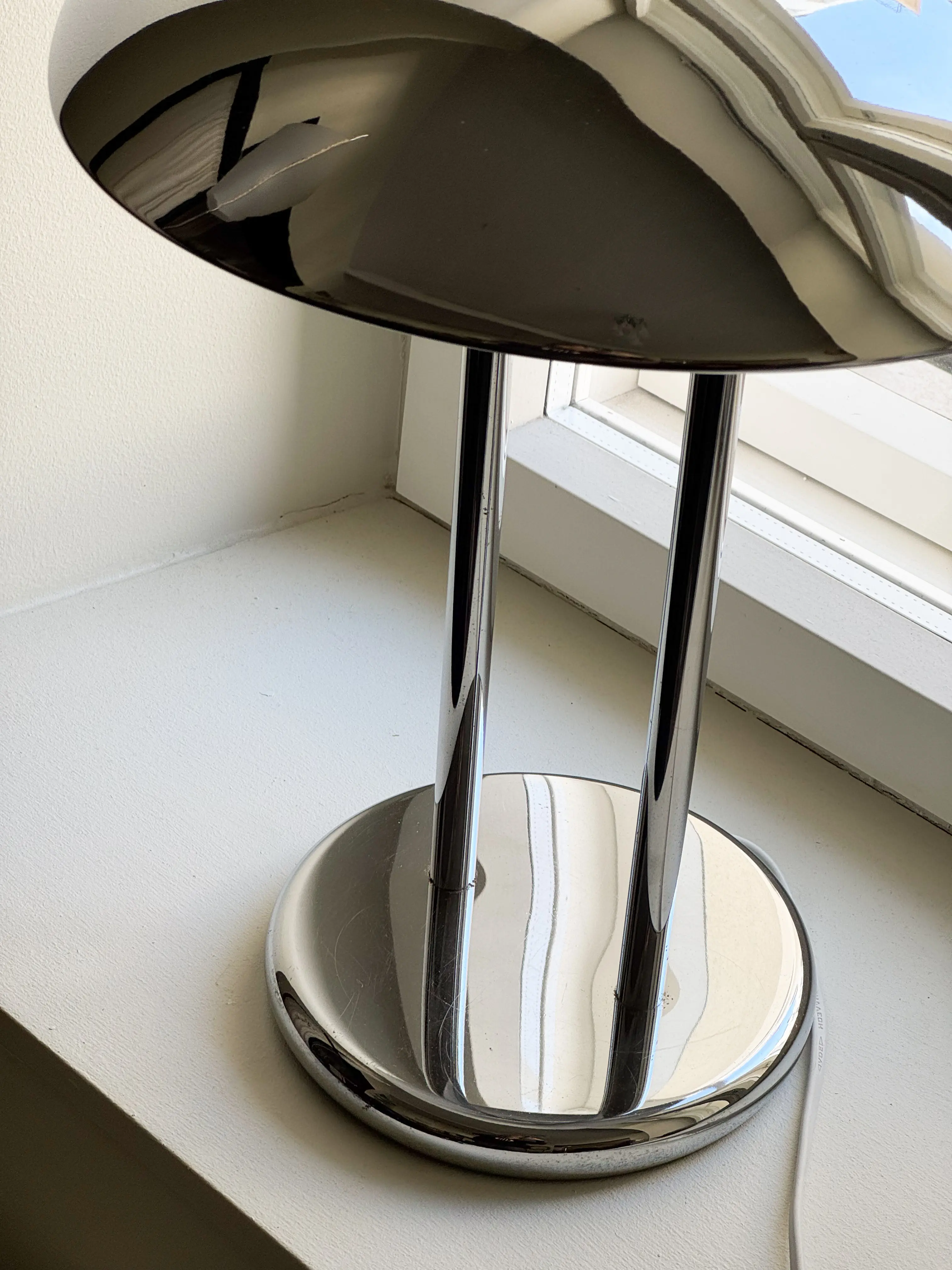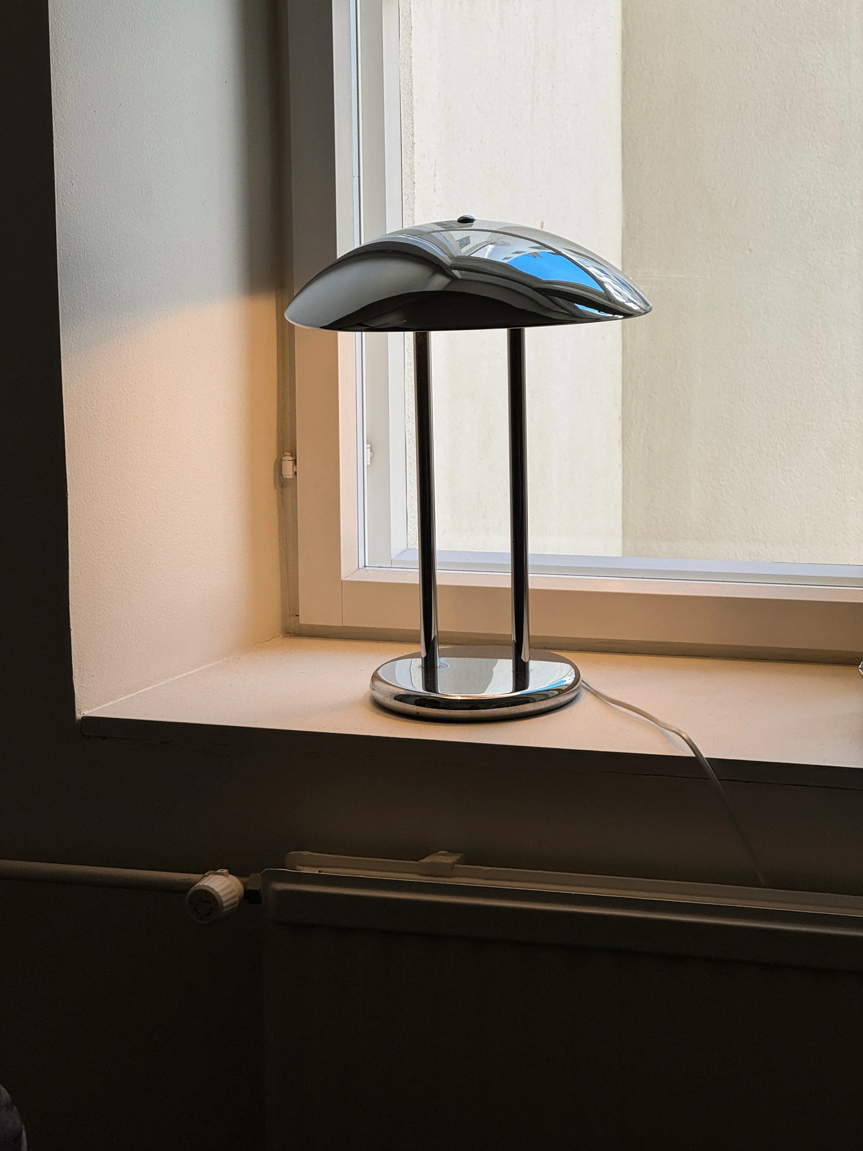 Post modern Barad desk lamp by Sonneman for 1980's Ikea. Chrome structure with two light fittings. In good vintage condition with some faint signs of age. Has been cleaned, inspected and tested by Mendera.