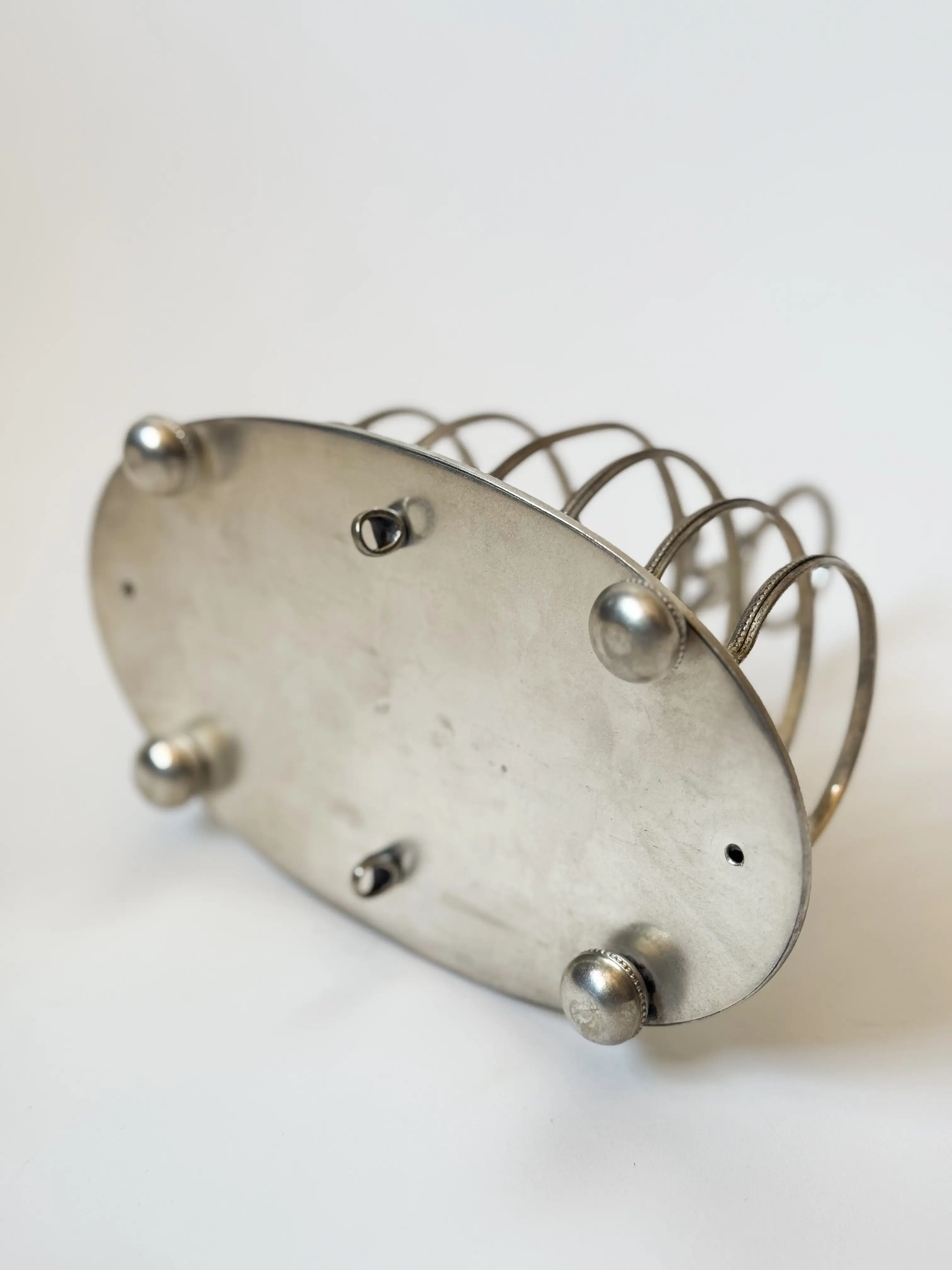 Vintage toast rack with beautiful handmade engravings. Inbuilt tray underneath to catch any crumbs. In great vintage condition. Has been cleaned and inspected by Mendera.