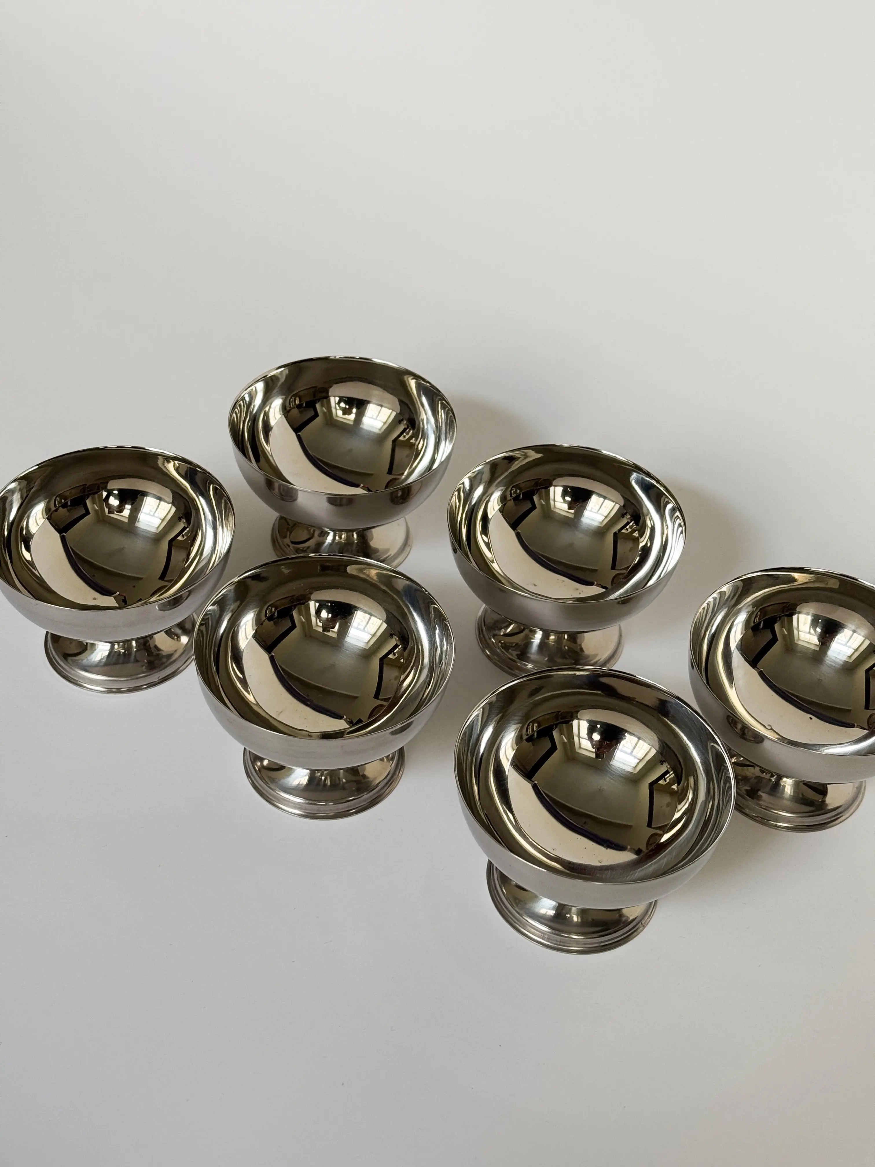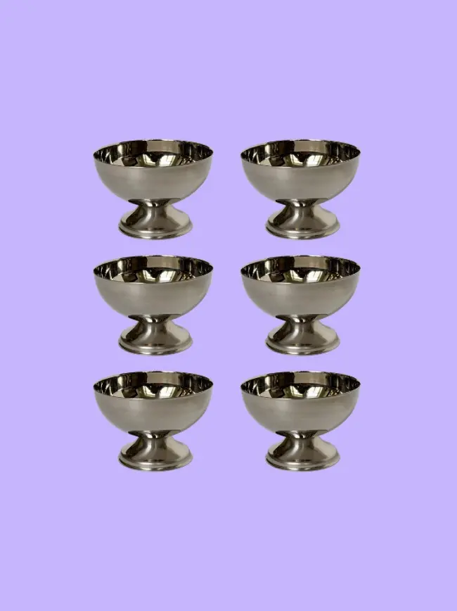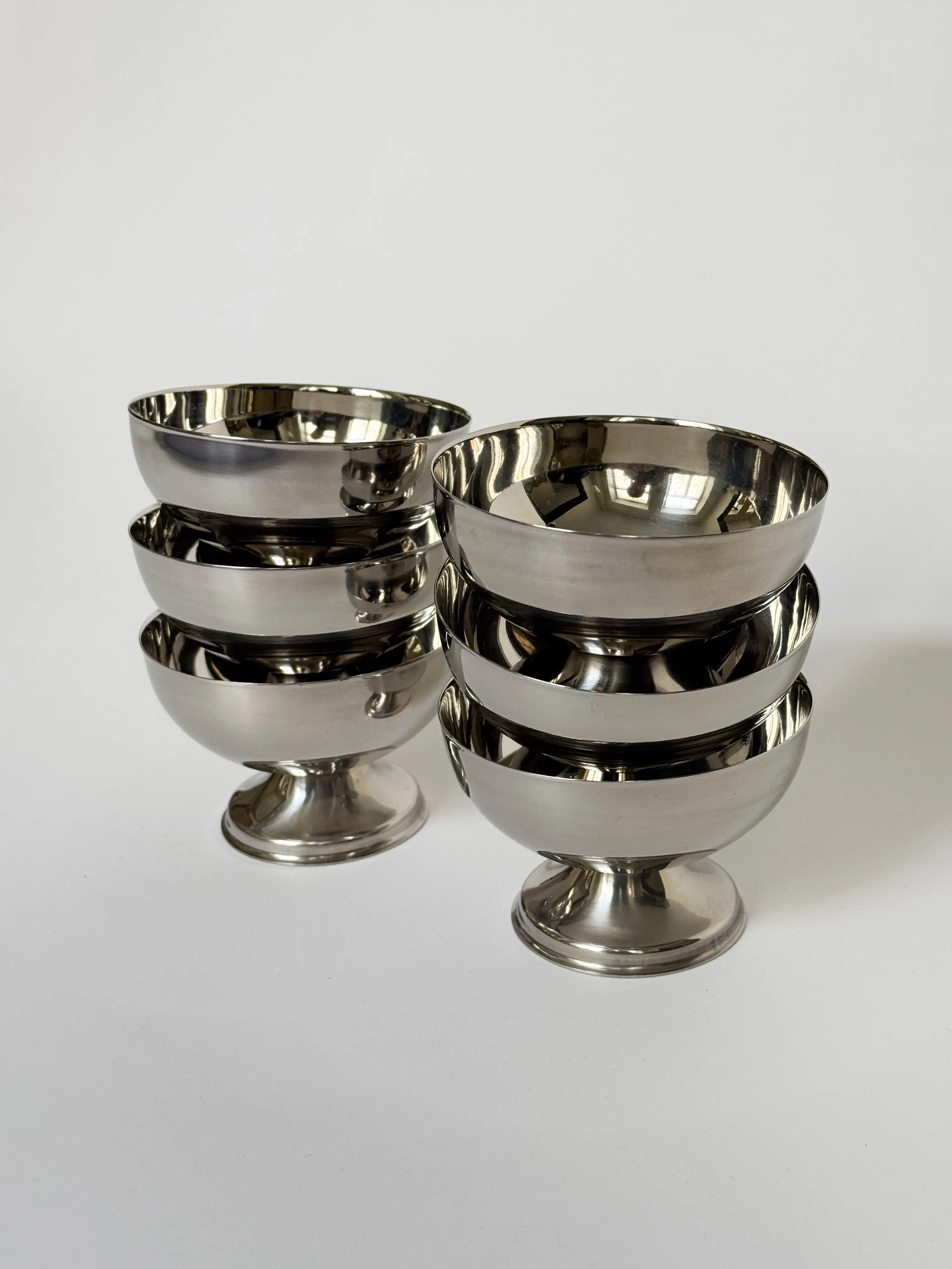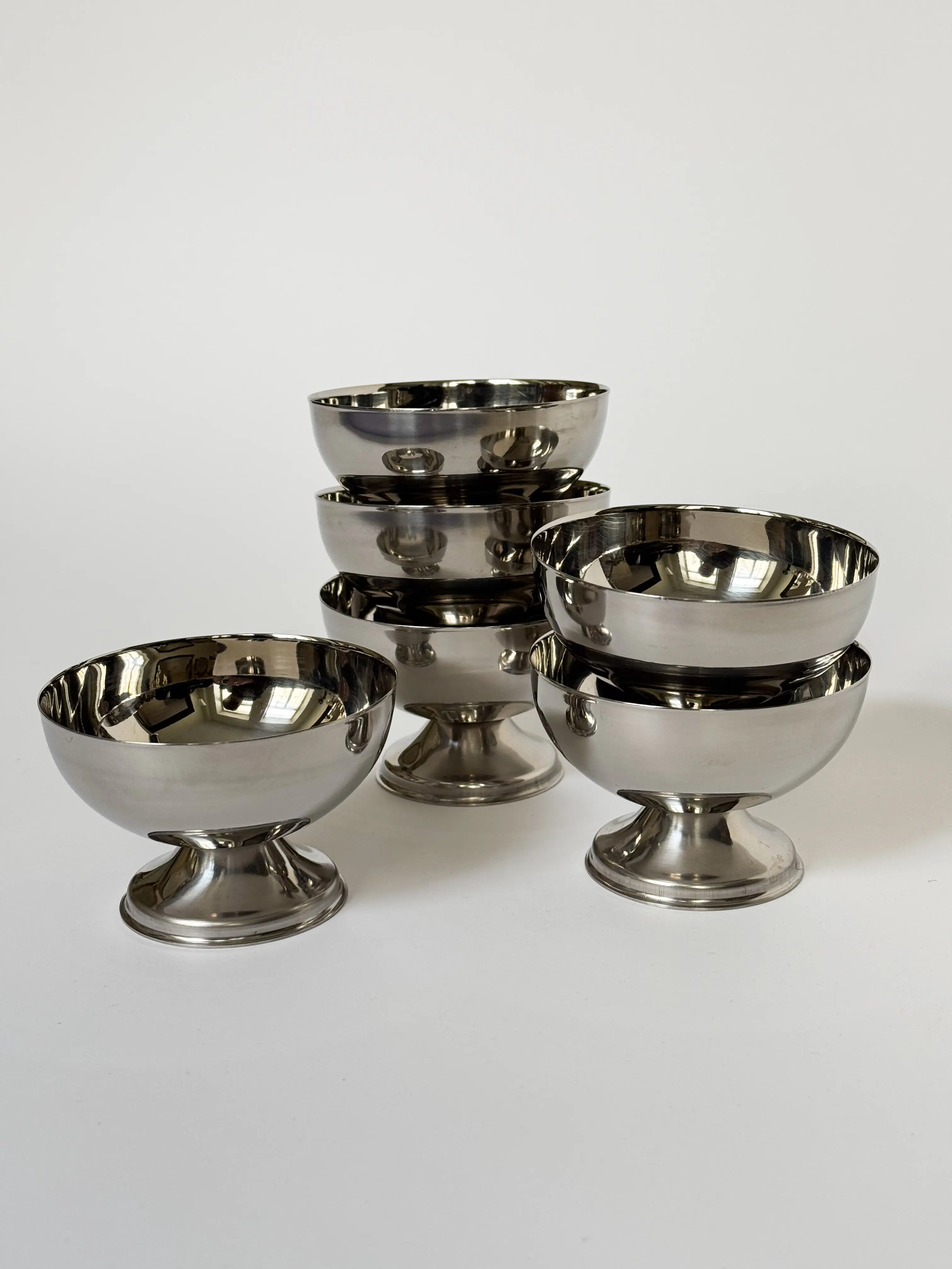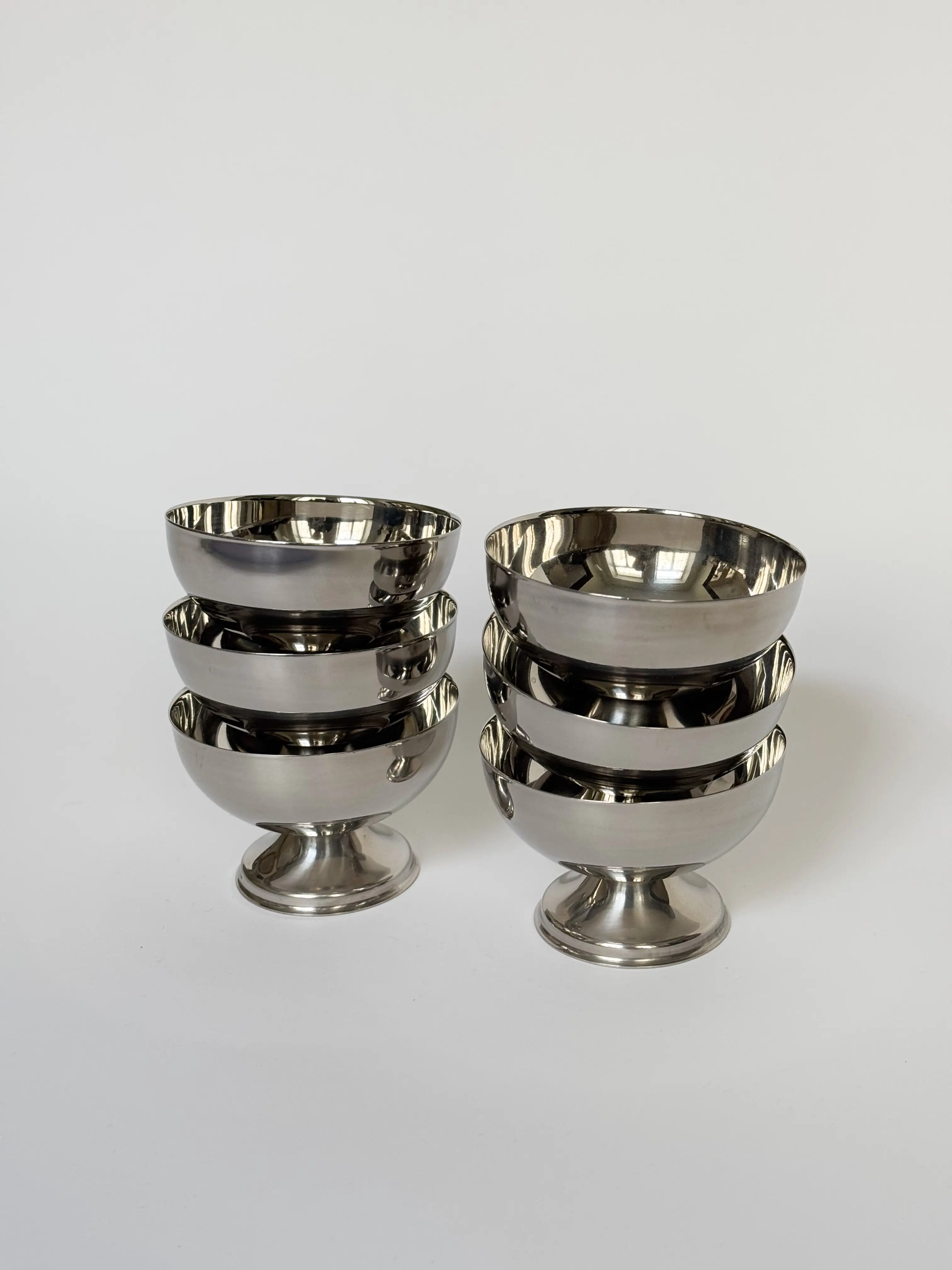 Vintage Italian gelato cup set in stainless steel. Set of 6 cups. In great condition. Has been cleaned and inspected by Mendera.