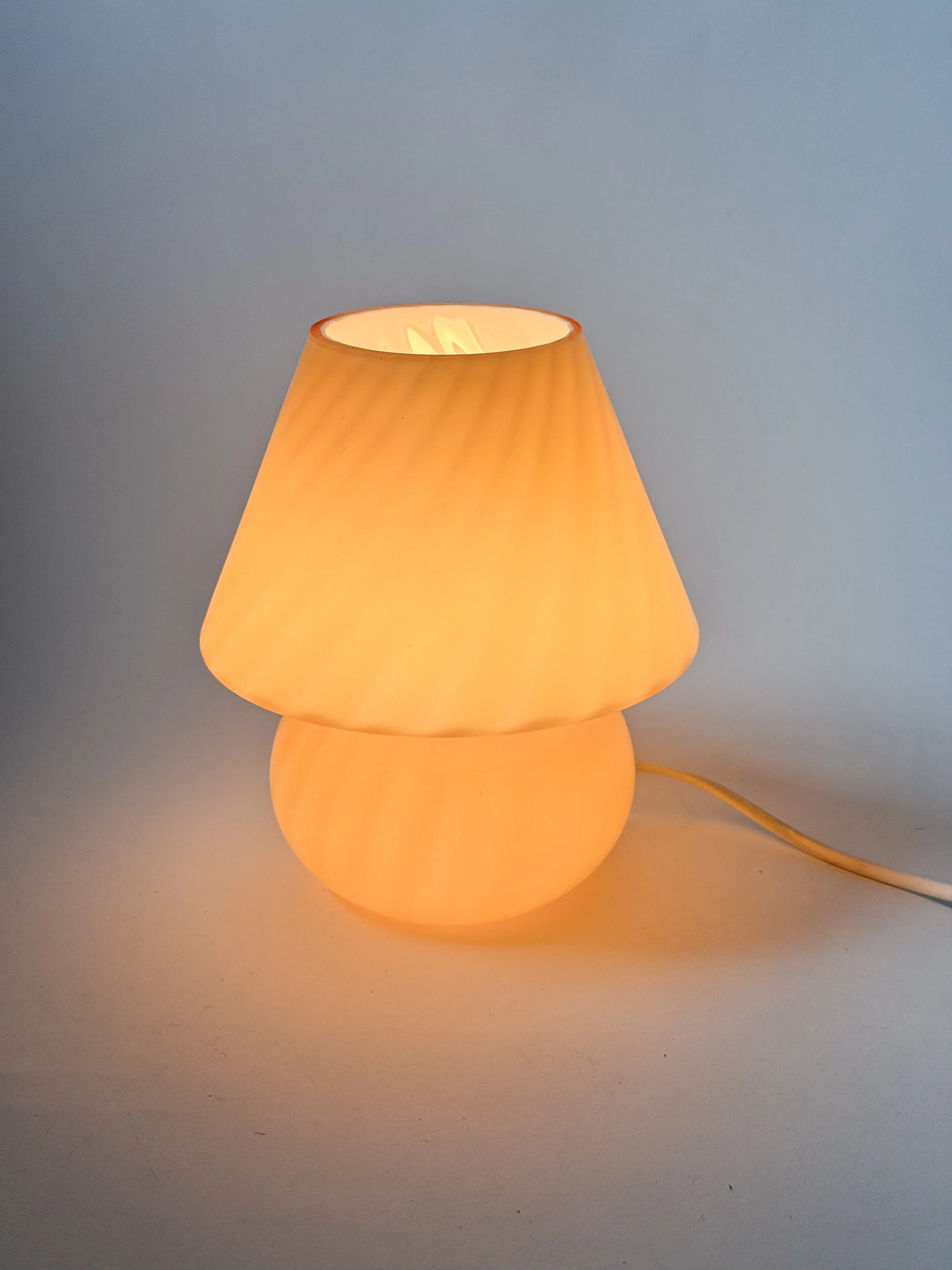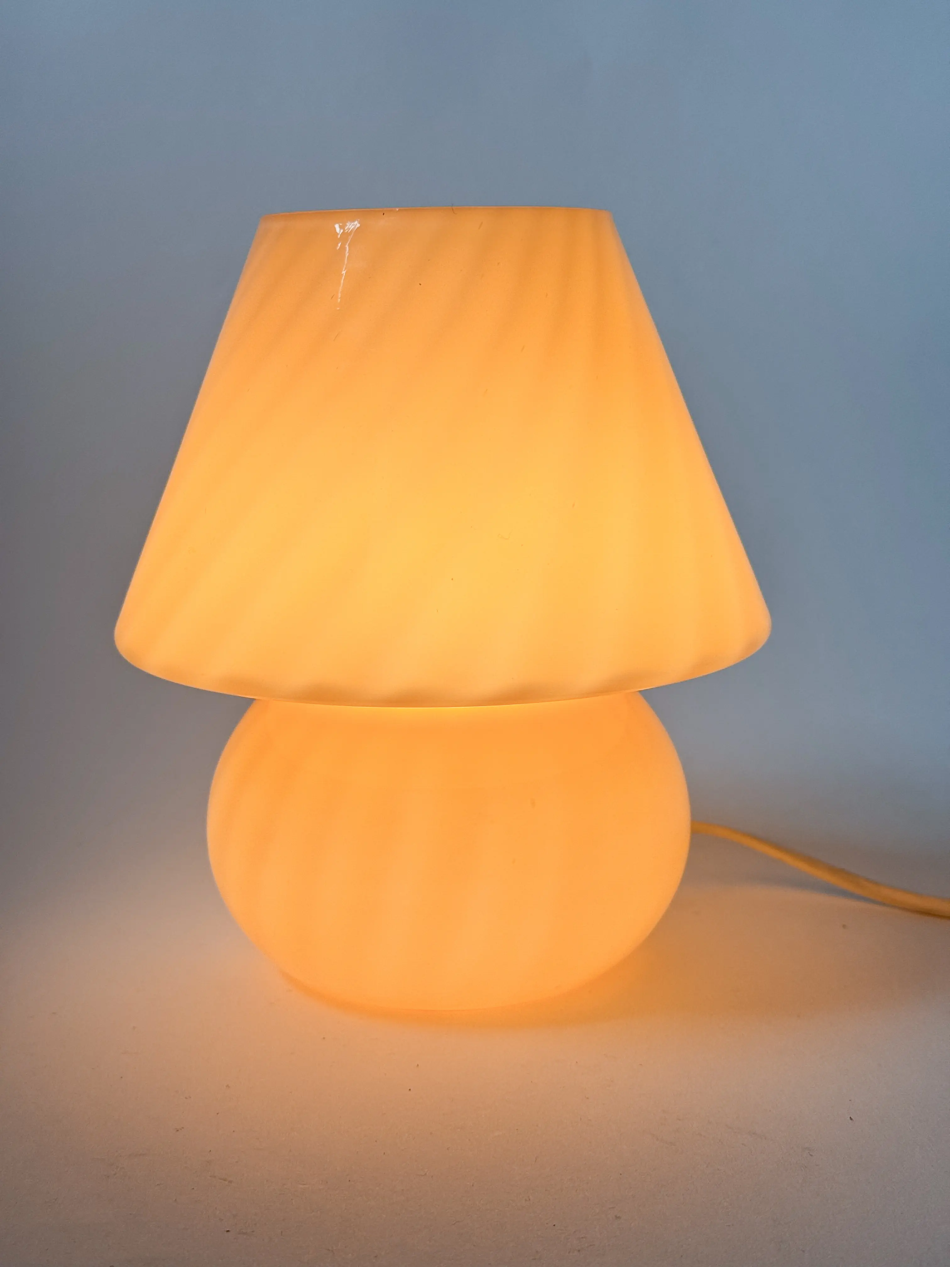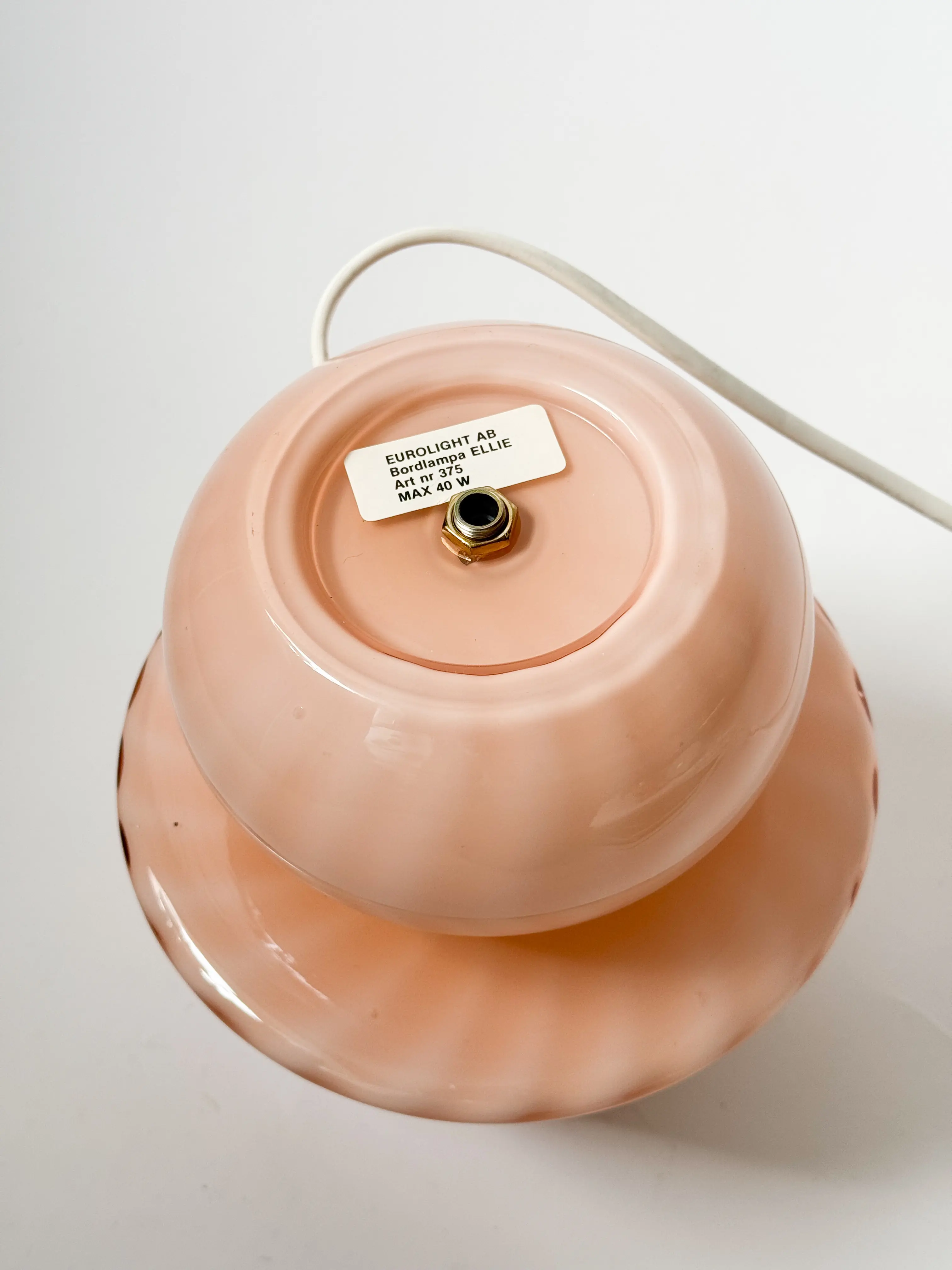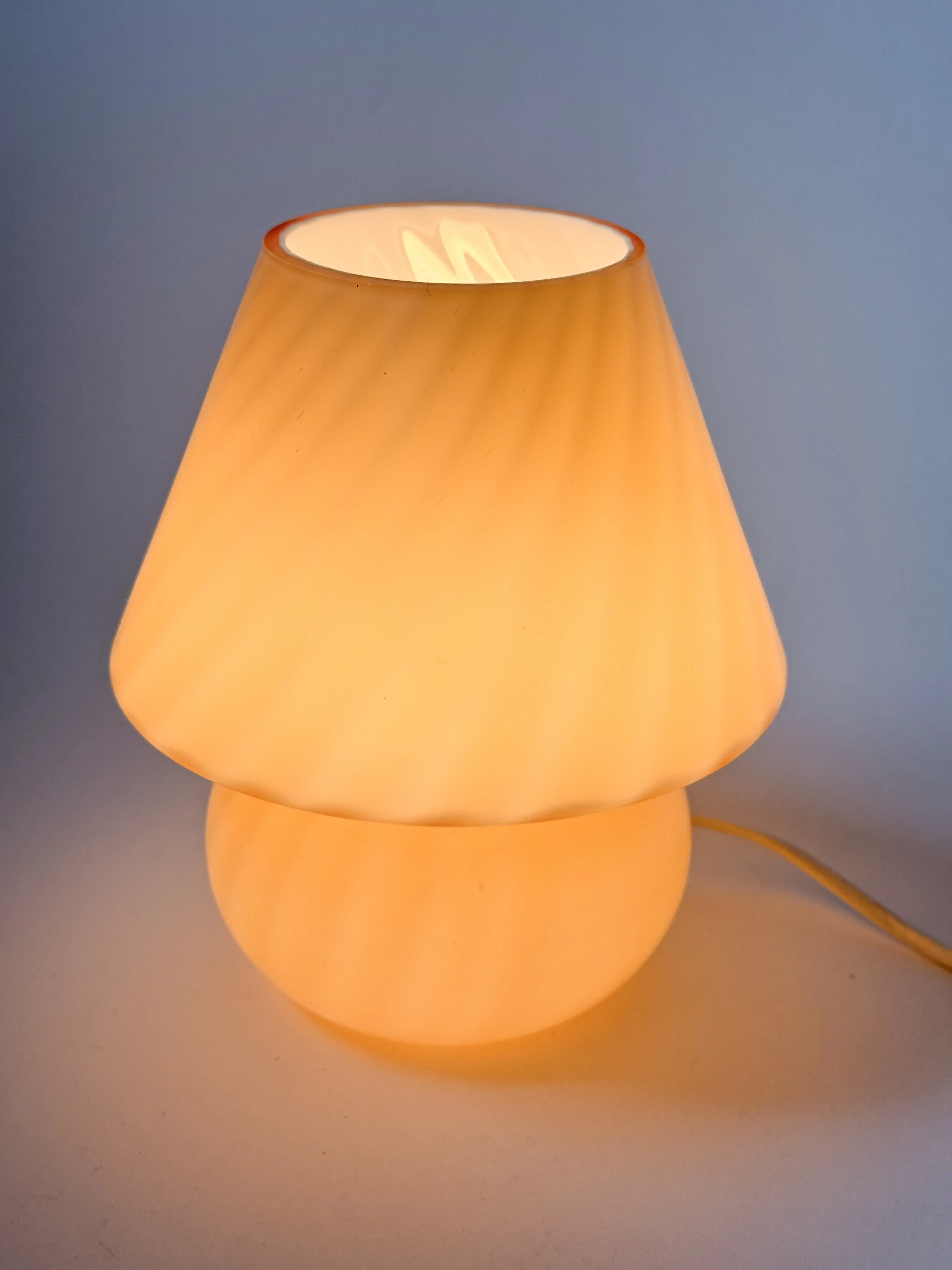 Vintage mushroom in peachy pink swirl glass. Beautiful warm and soft light. In excellent condition. New plug installed. Imported by Eurolight Ab. Has also been tested, cleaned and inspected by Mendera.