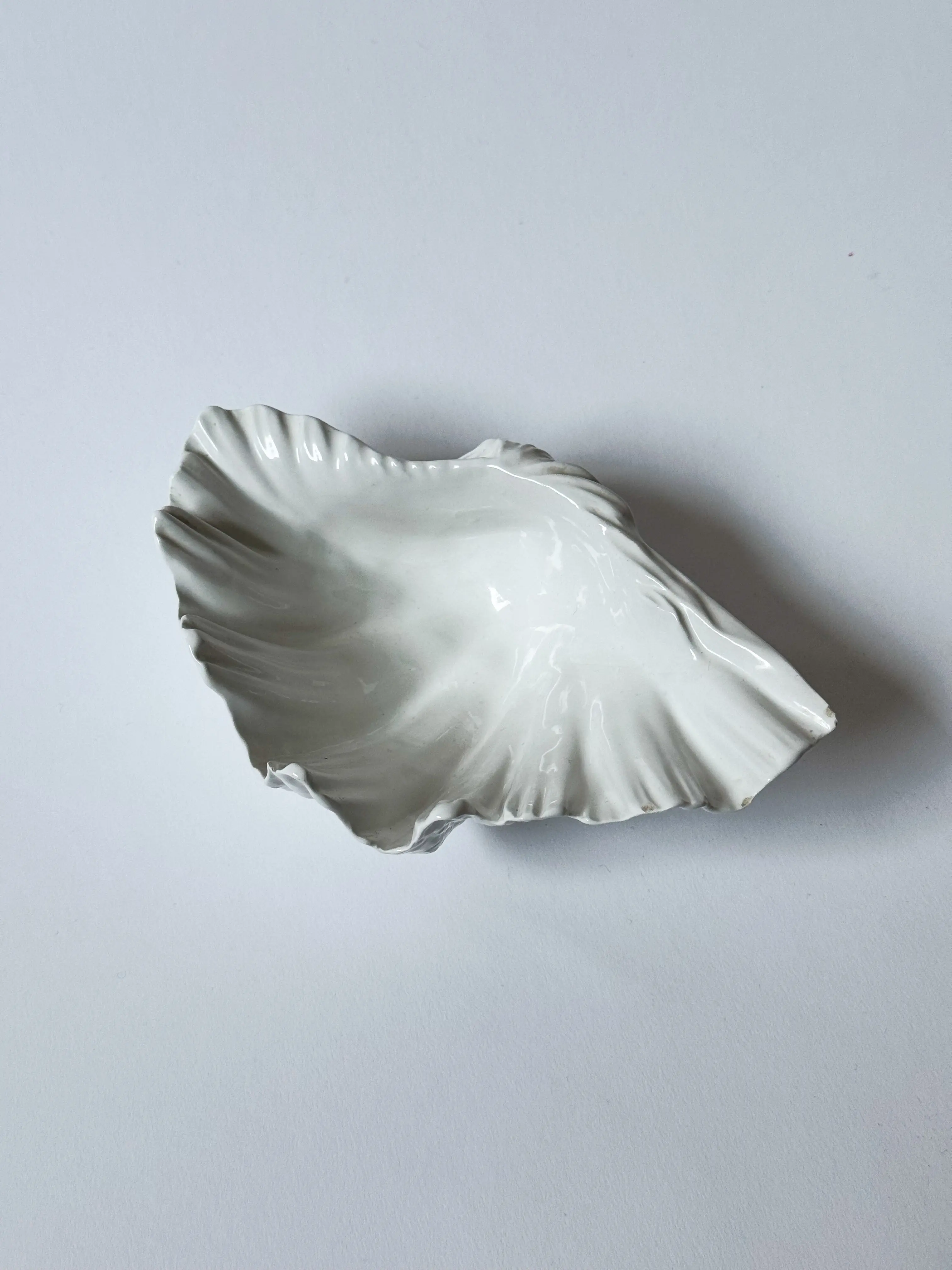 White ceramic shell bowl. In good overall condition with some marks on the edges - see pictures. Has been cleaned and inspected by Mendera.