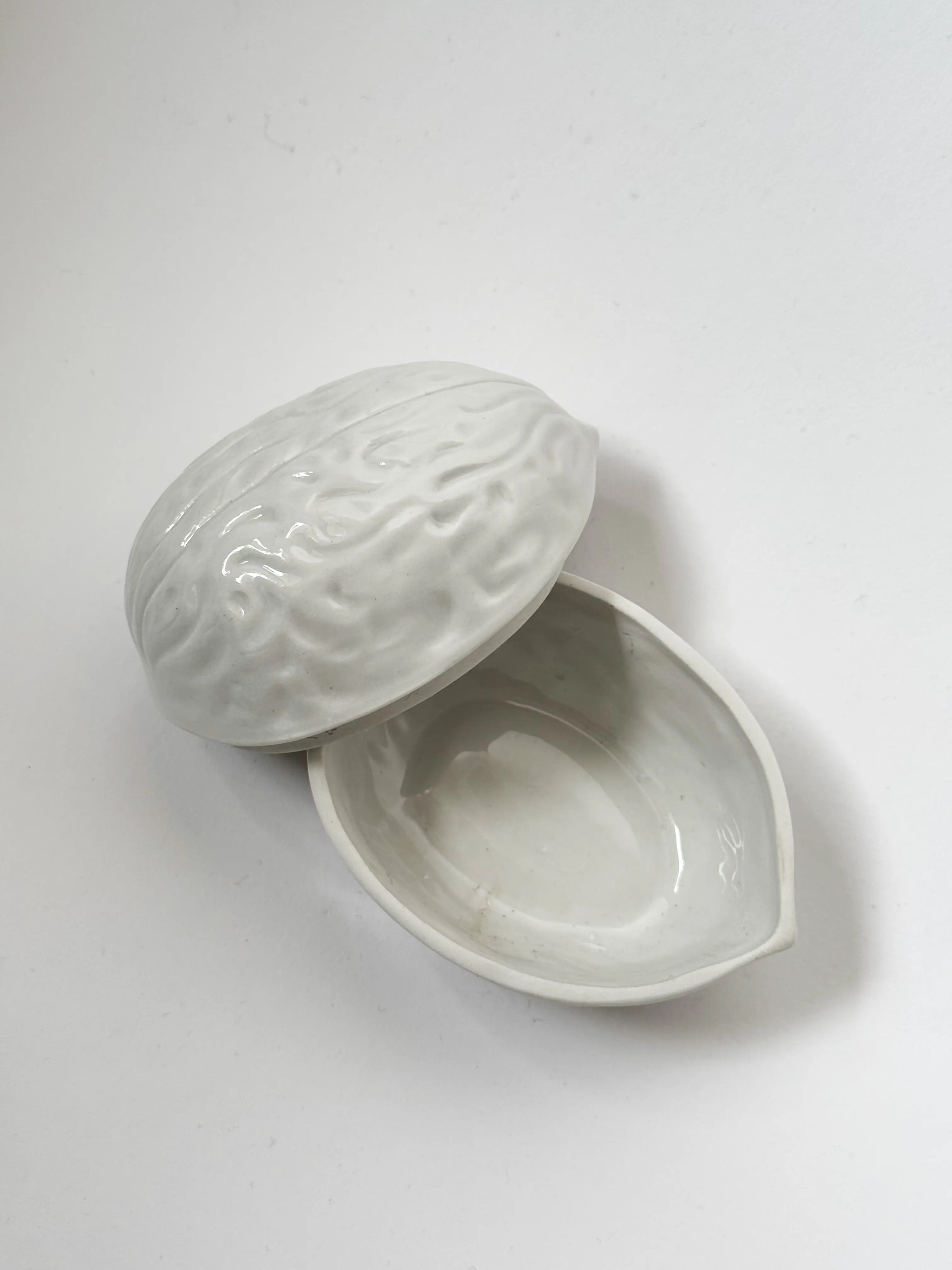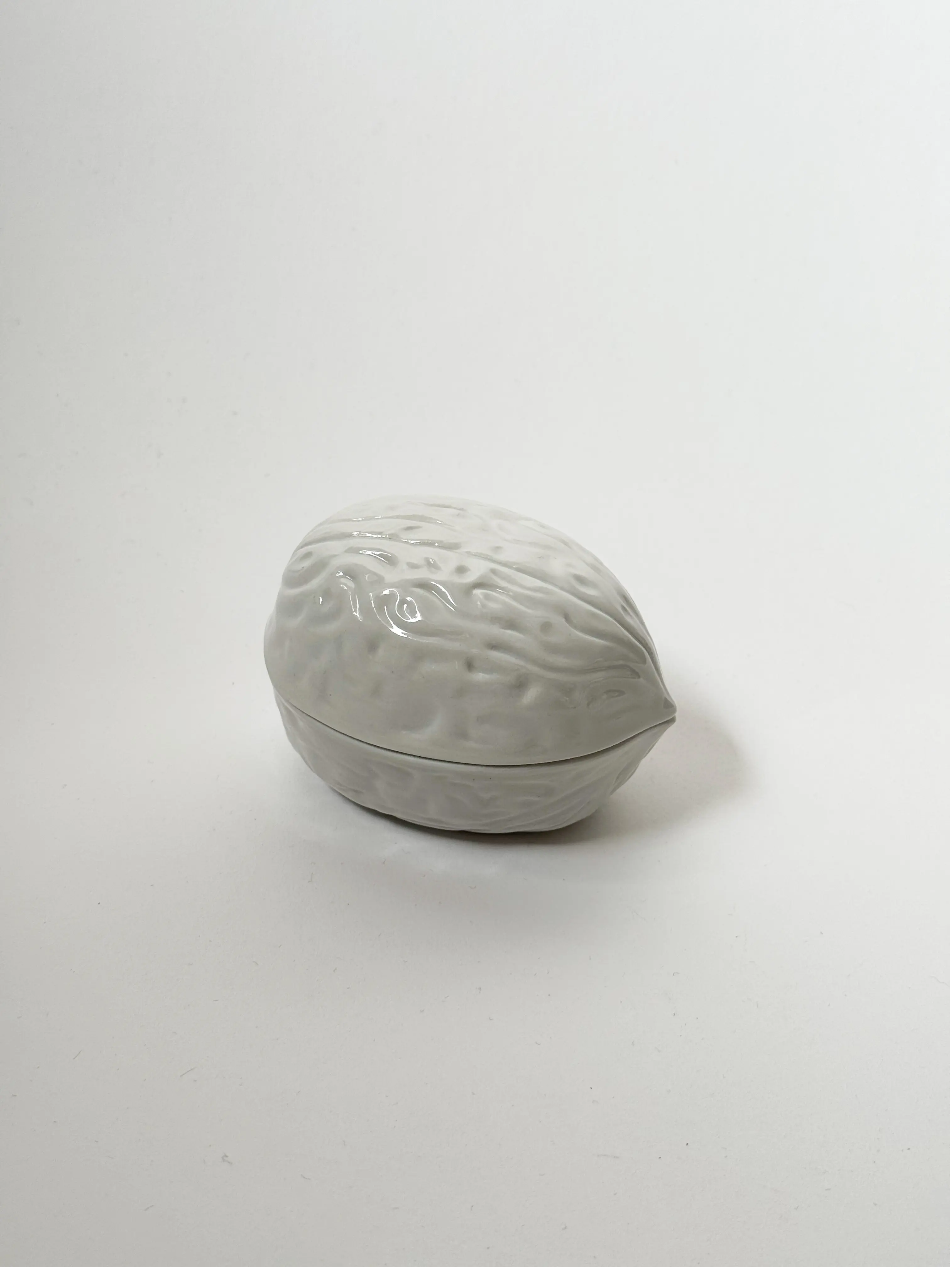 Super cute Italian vintage walnut jar in glazed ceramic. In excellent condition. Has been cleaned and inspected by Mendera.