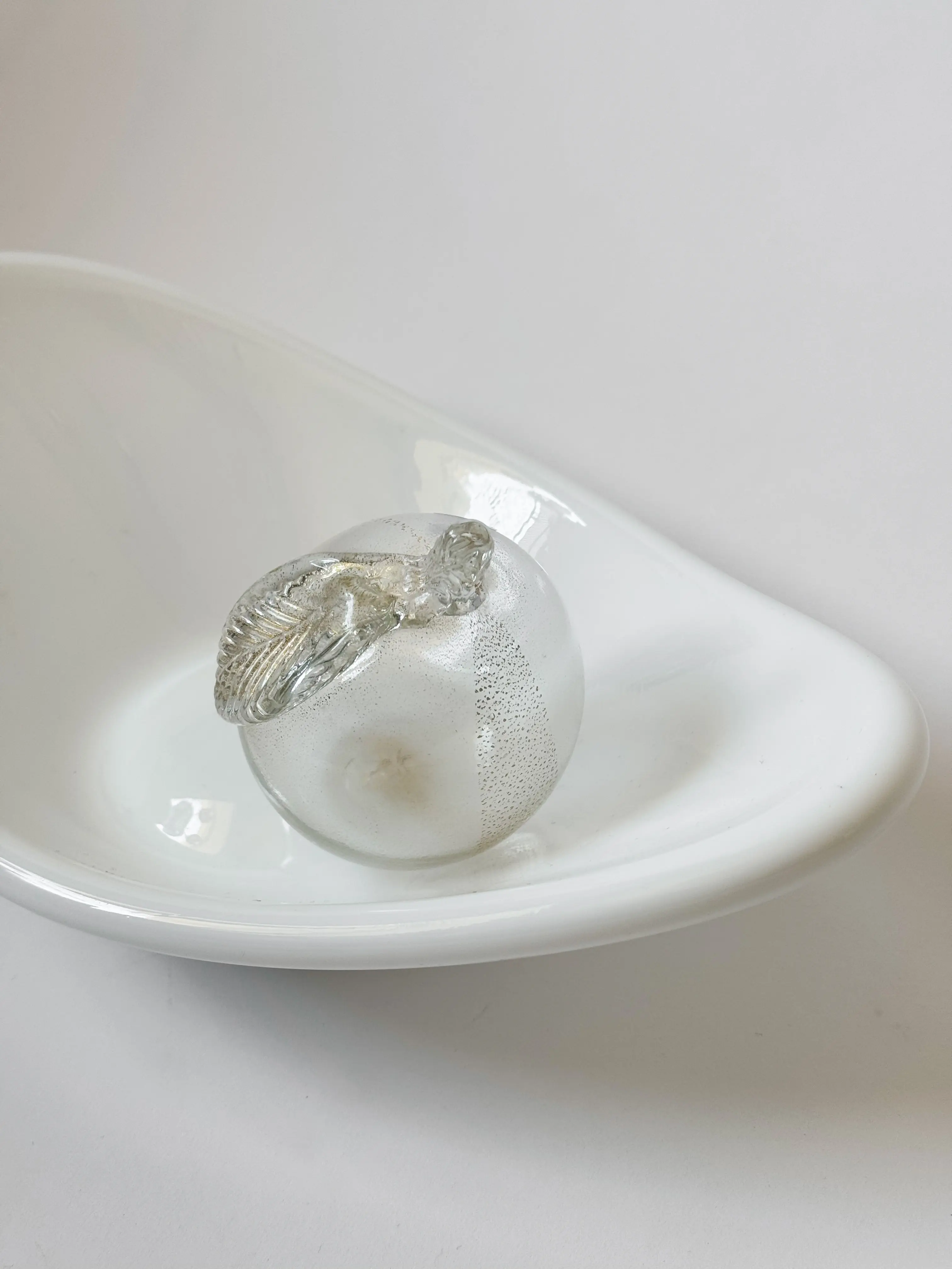 White handblown glass bowl